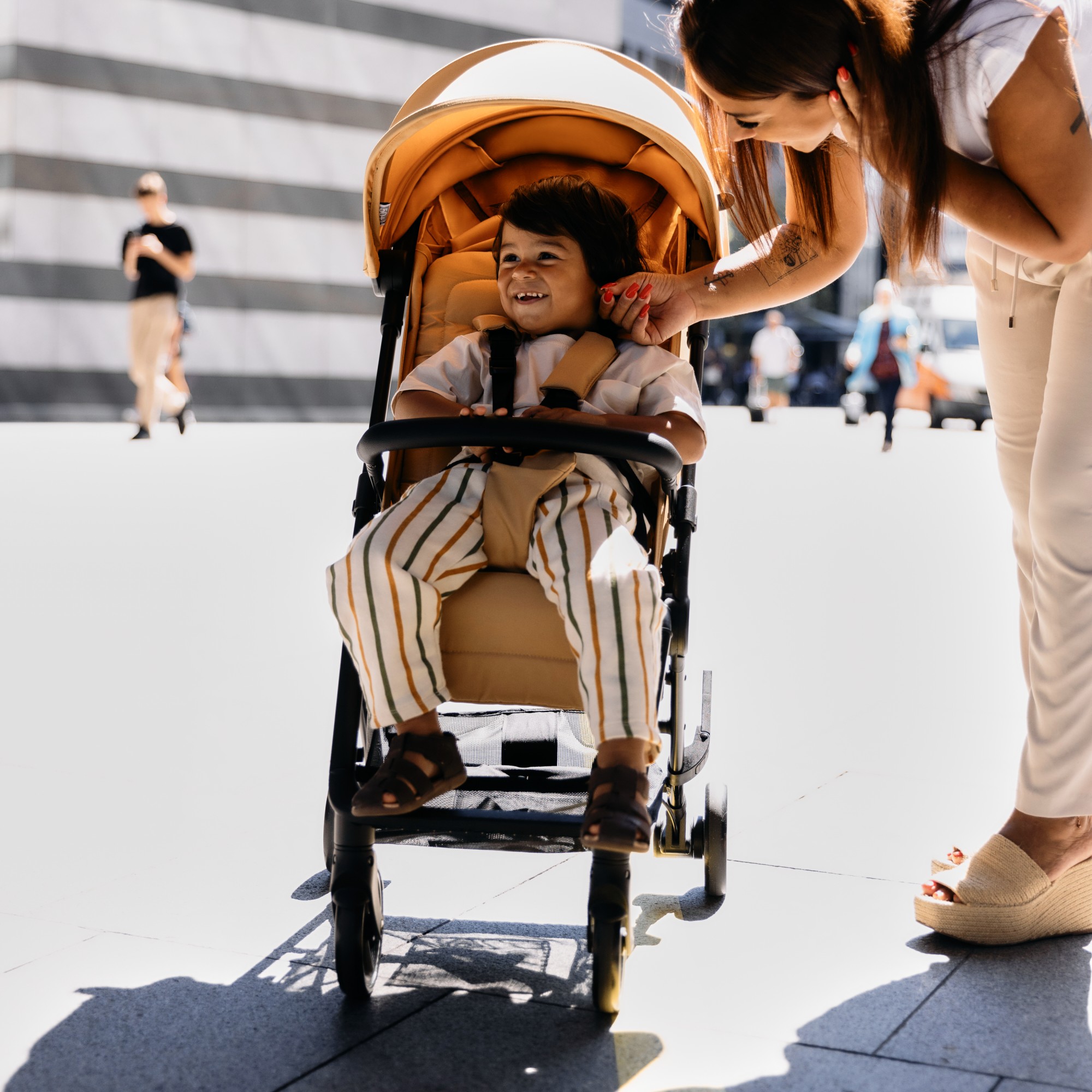 Идеальная коляска для путешествий - в автомобиле, автобусе, поезде и самолете (пожалуйста, соблюдайте правила авиаперевозок). Легко складывается и раскладывается на ходу одной рукой.