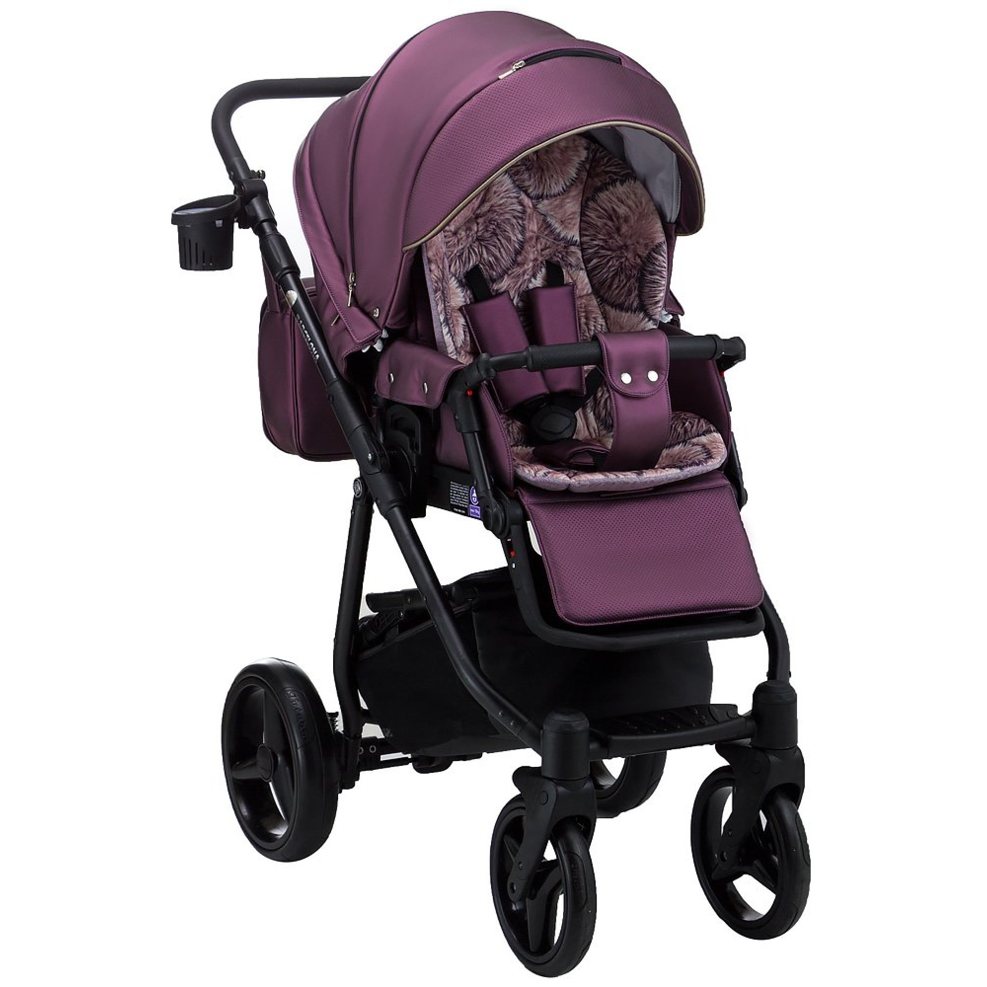 Мягкая пружинная амортизационная и поворотные передние колеса позволяет комфортно путешествовать по неровной или ровной поверхности. Коляска укомплектована стильной вместительной сумкой для мамы и закрытой корзиной для покупок, съёмным держателем для бутылочек, москитной сеткой и дождевиком.