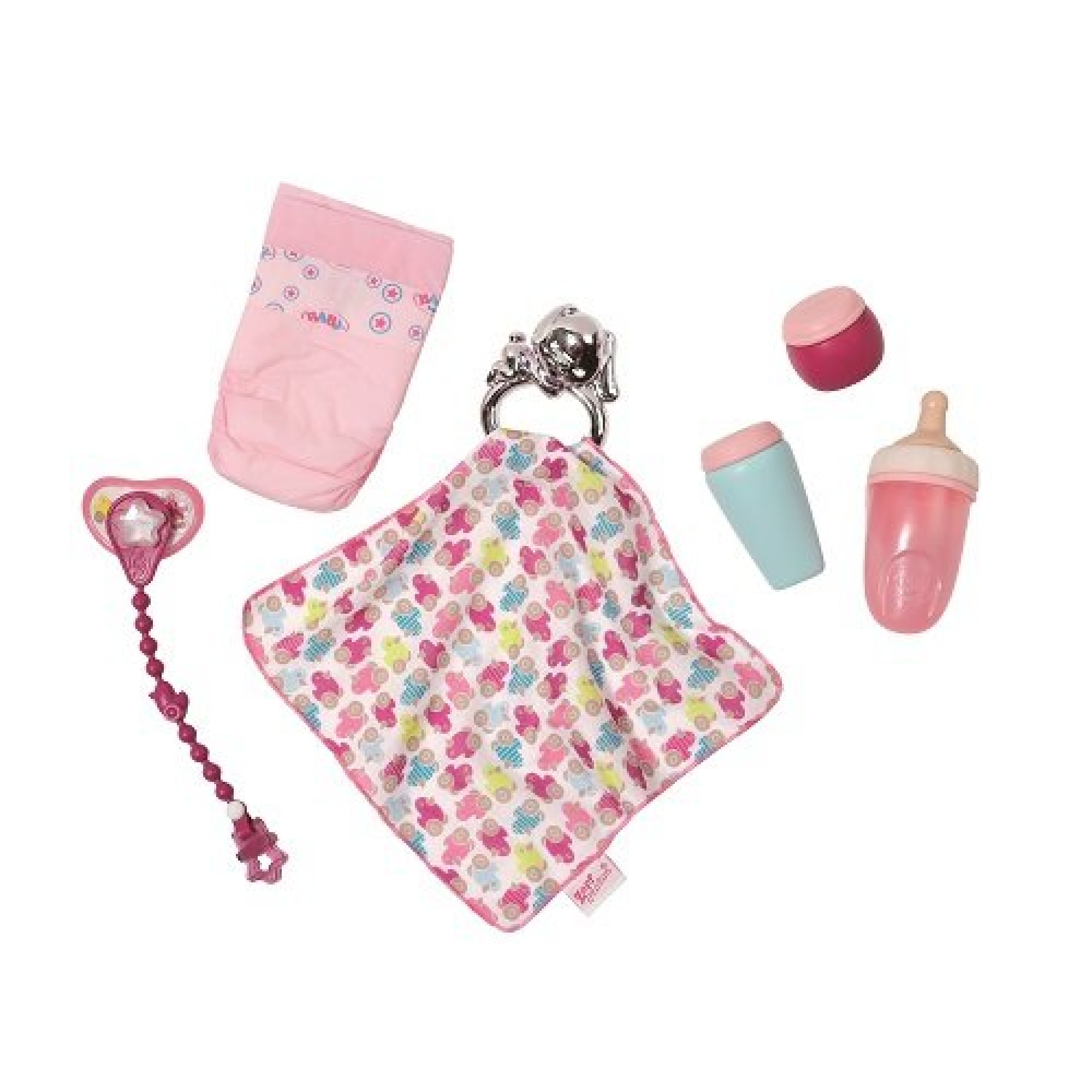 Набор аксессуаров для куклы Baby Born Утиные истории (822173) - чтобы ухаживать за вашей любимой куколкой было легко и приятно, вам понадобится много полезных мелочей! Бутылочка, крем, пустышка на цепочке, подгузник и пеленка с погремушкой. Все выглядит очень стильно и ярко: только посмотрите на этих уточек! Маленькая мама просто не сможет обойтись без этих аксессуаров.