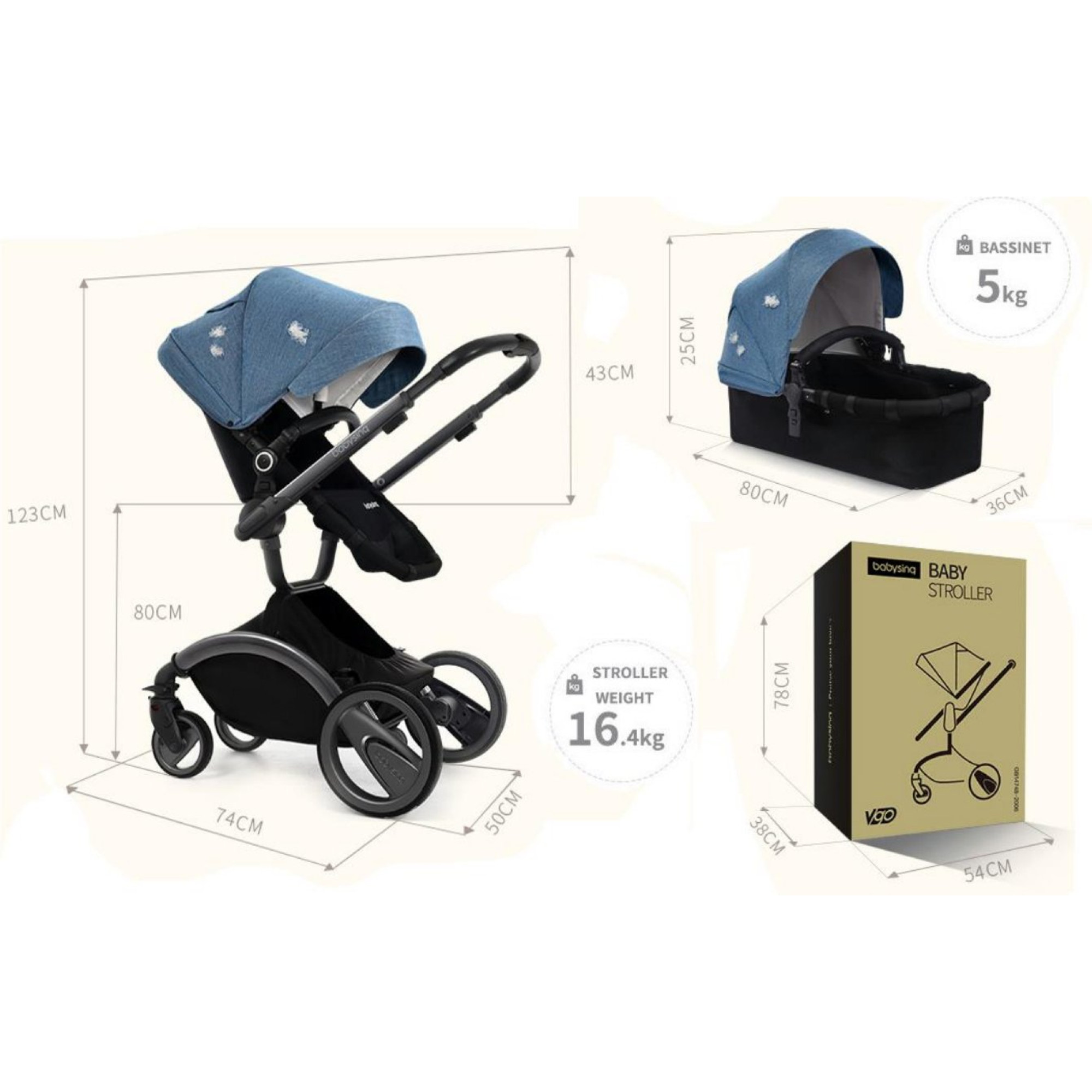 Коляска 2 в 1 Babysing V-Go Jeans Blue