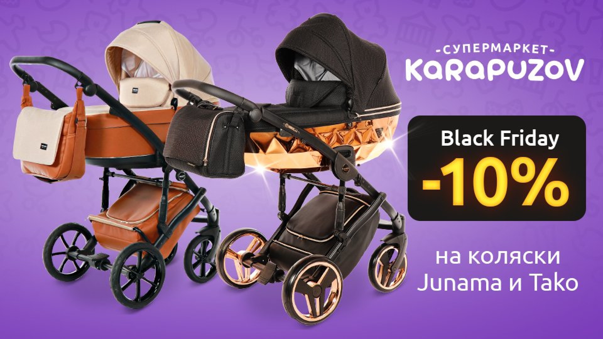 Наш марафон выгодных предложений на Черную пятницу продолжается! Будущие родители могут купить коляску Junama или Tako для новорожденного по скидке 10%. Много это или мало? Посмотрите на цены польских колясок для новорожденных и поймете сами, что это действительно выгодная скидка на популярные модели детских колясок. И мы подтверждаем – это самая выгодная акция на коляски Junama, Tako в 2019 году.