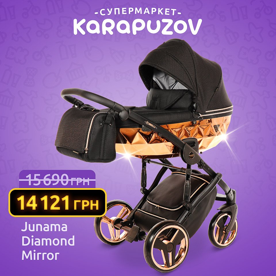 Может ли модная детская коляска быть еще ярче? Абсолютно, если речь идет о детской коляске Junama Diamond Mirror. Люльку с основной под бриллиант польский производитель сделал с зеркальным покрытием. Коляска Юнама Даймонд Мирор буквально сияет на свету! Если же родителям хочется более сдержанный вариант, то подойдет коляска Junama Diamond Satin. Вместо зеркального покрытия люльки используется матовое, но это решение не делает ее менее эффектной. Купить Junama Diamond Mirror и Satin по скидке 10% в «Карапузов» получится только на Черную пятницу. Выгодное предложение действует только 5 дней. Поспешите!