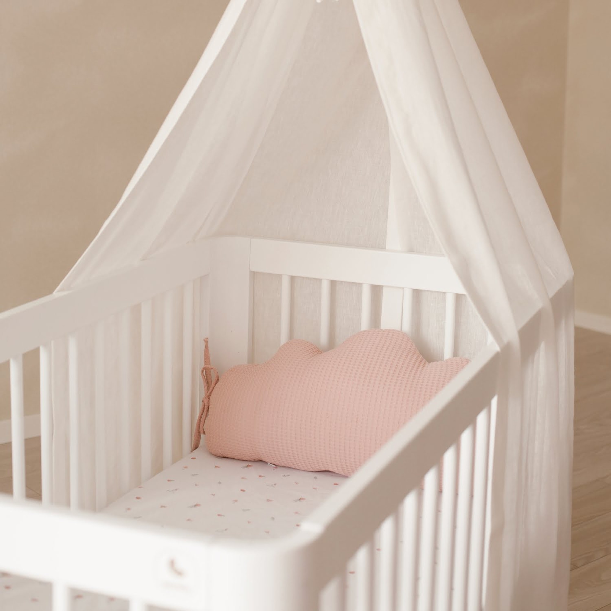 Подушка-облачко - красивая декоративная вещь и надежная защита малыша в кроватке. Такие нежные бортики-облака защищают маленьких вертунов от случайных ударов о твердую поверхность кроватки, сквозняком и холодных стен. Подушка-облачко сделана из экологически чистых материалов и надежно крепятся к кроватке специальными завязками. Гармонично сочетается с бортиком-косичкой.