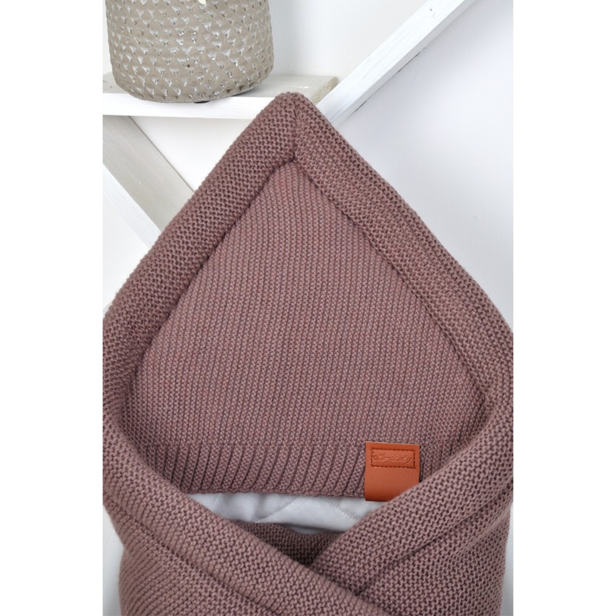 Конверт на выписку выполнен из шерстяного полотна, что придает ему нотку роскоши. Обратная сторона одеяла выполнена из плюшевой махры.