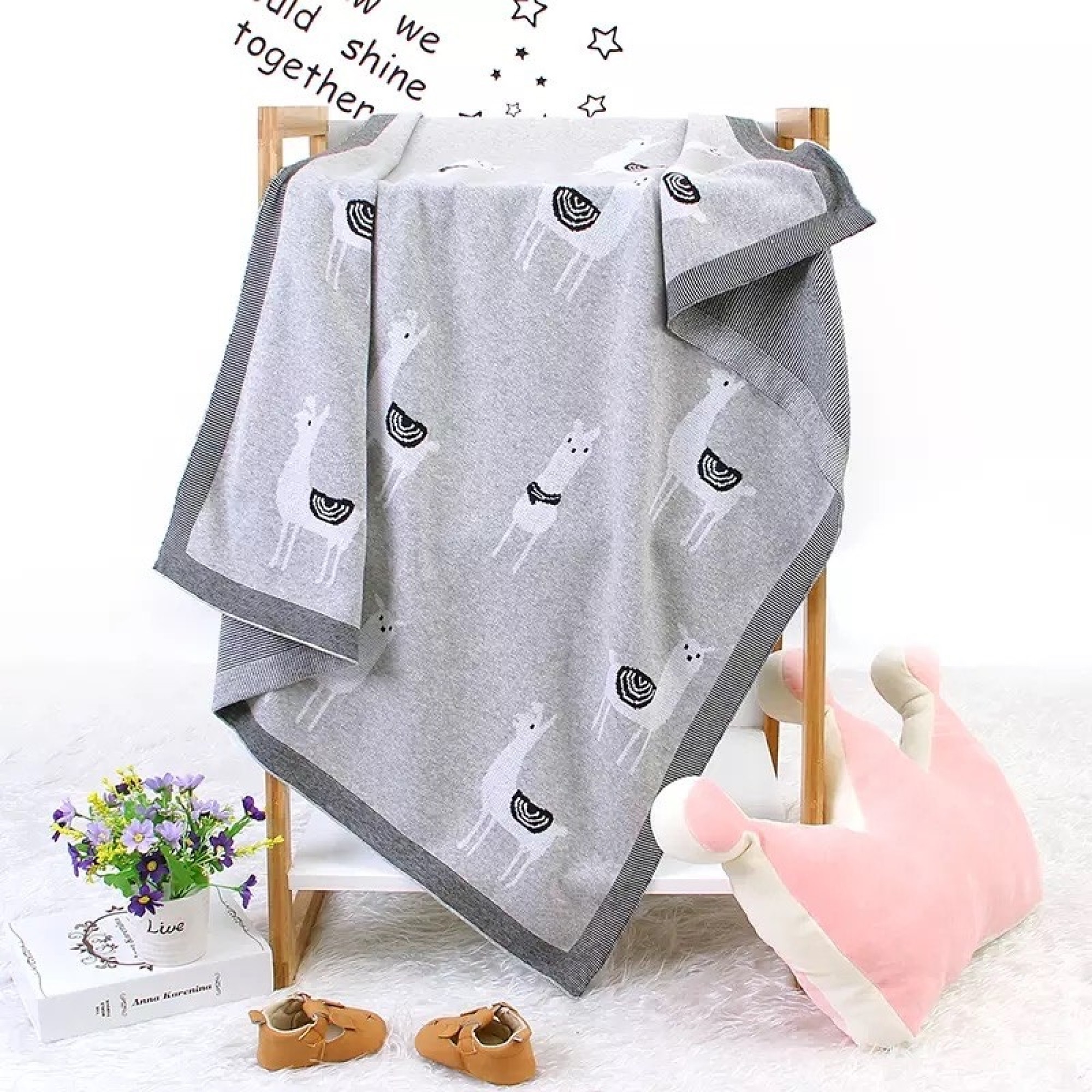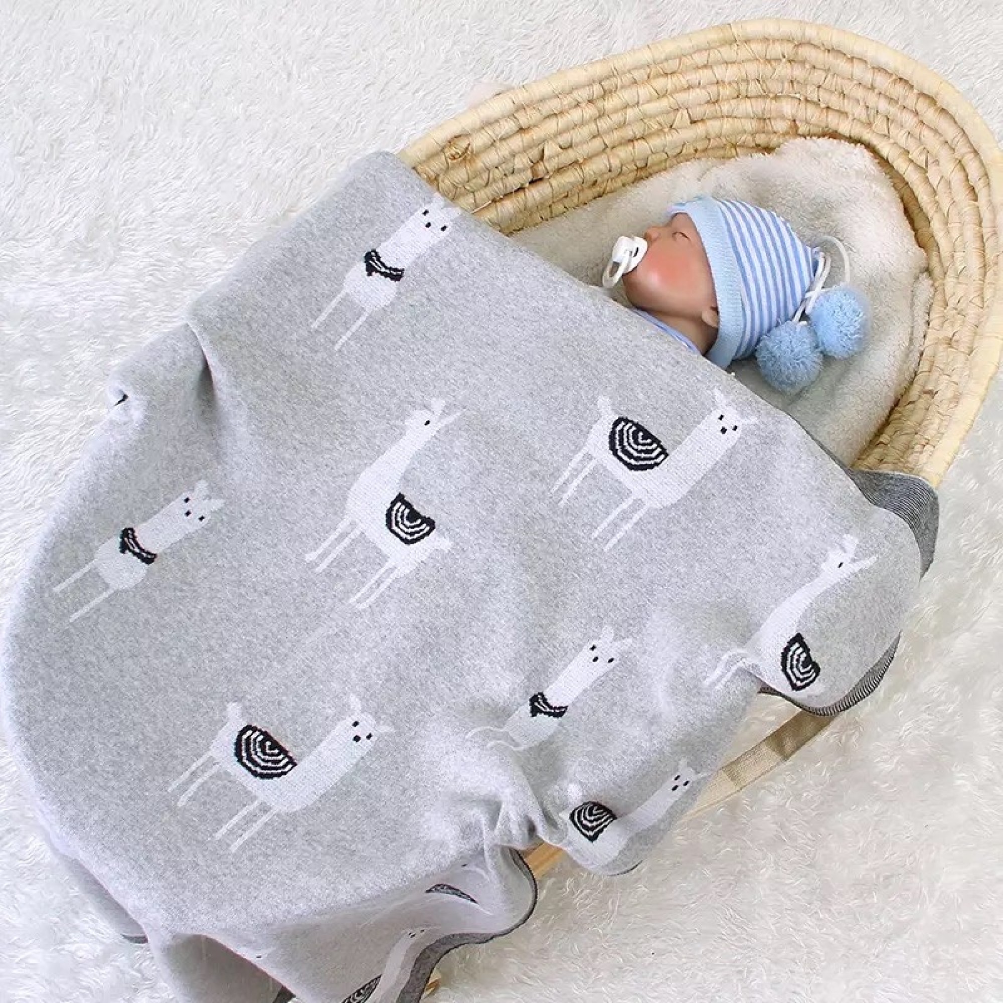 Детский вязаный плед Lovely Svi 80х100 см, хлопок 100%, Лама серый (330821)
