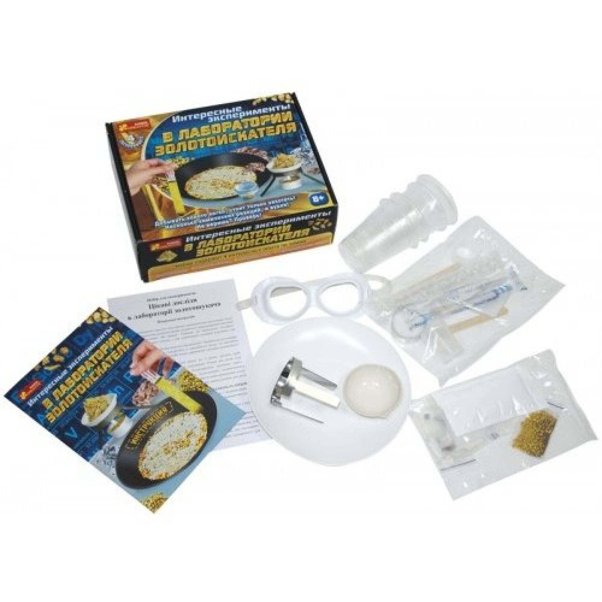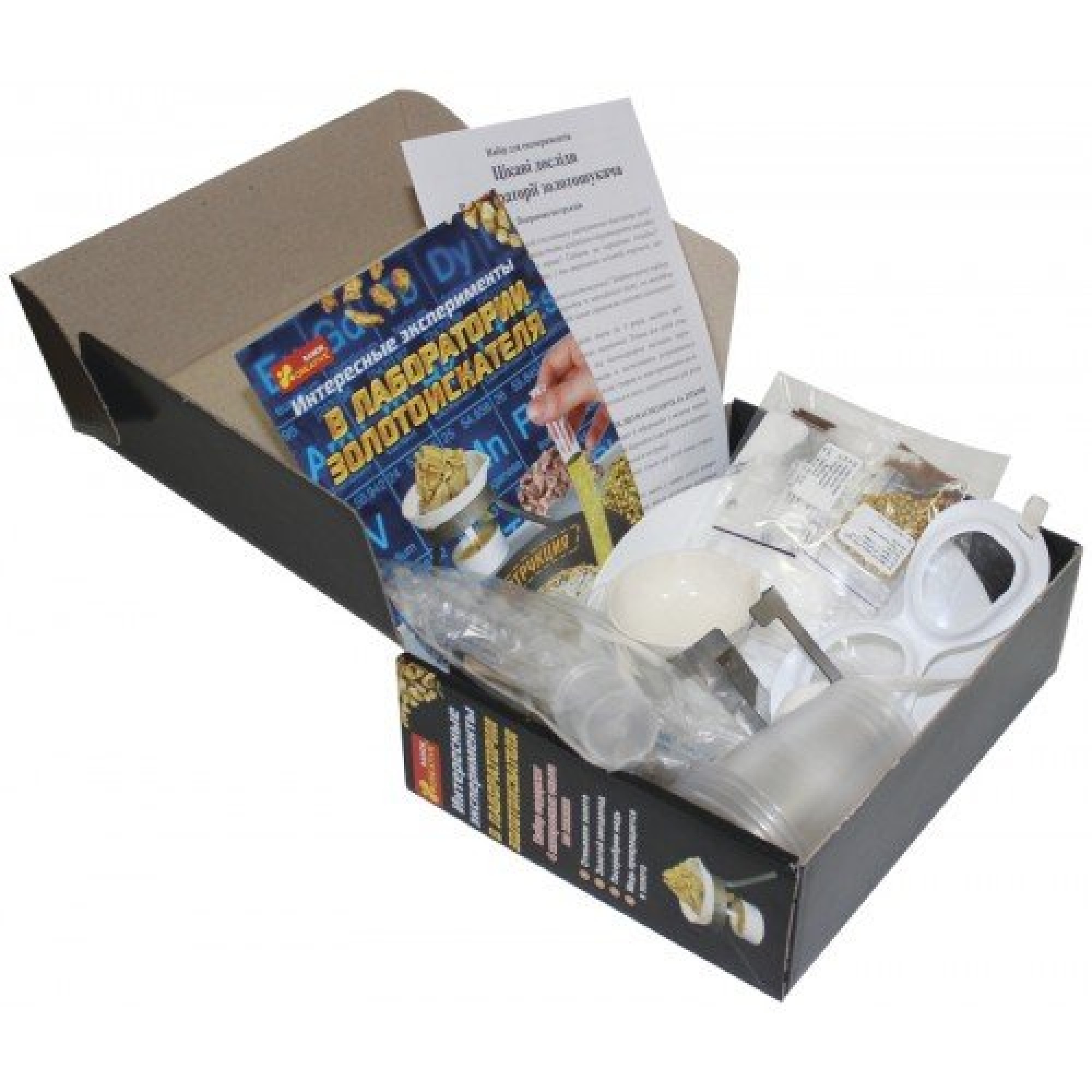 Стать алхимиком за пару часов и превратить обычные предметы в золото не только реально, но и легко! В наборе-лаборатории золотоискателя есть все необходимое для проведения экспериментов, а еще много интересных фактов о золоте. Всего лишь за пару минут можно научиться «отмывать золото» из обычного песка, увидеть настоящий золотой звездопад, превратить медь в золото. Набор золотоискателя станет отличным подарком для юных исследователей и любителей изучать новое, открывать научные тайны!