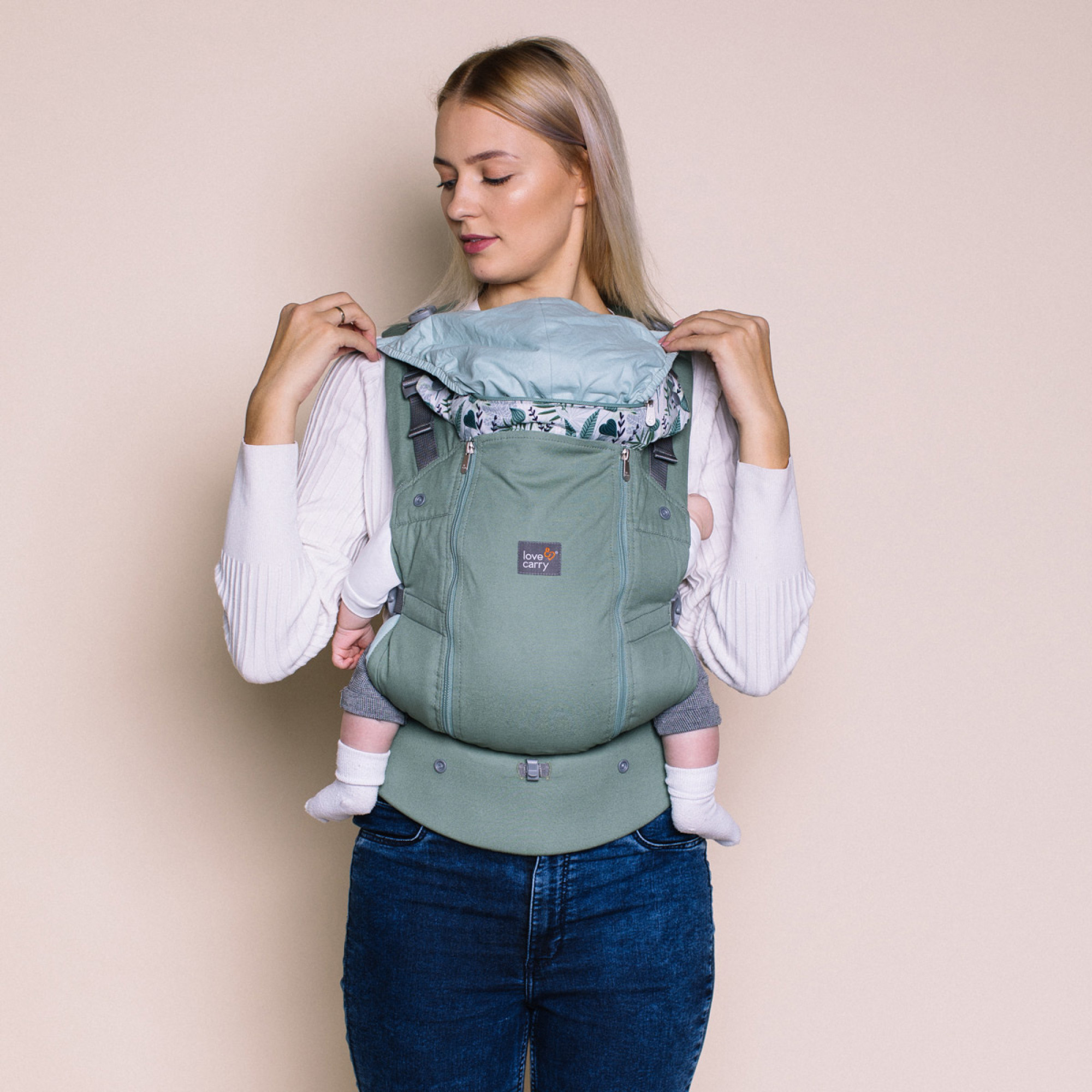 Ребенок будет чувствовать себя комфортно, рюкзак обеспечивает физиологическое положение ребенка - М-позицию, также поддерживает позвоночник ребенка по всей длине. В спинку вшиты подголовник и капюшон, чтобы когда малыш заснет, и ему, и родителям было комфортно. Подголовник с двумя положениями и регулируемая соединительная стропа, что снимается.