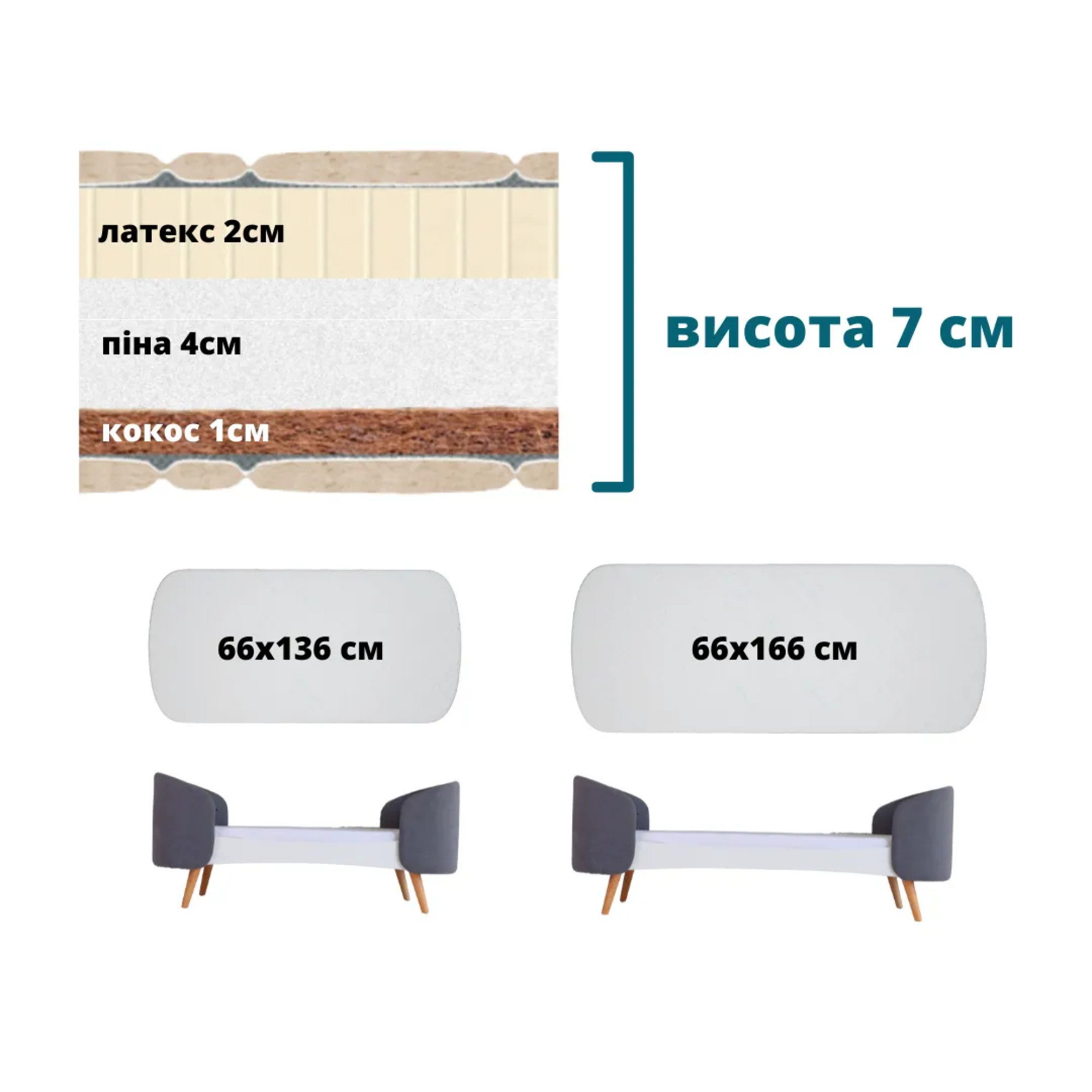 матрас на детскую кроватку (кокосовая койра, пена, латекс) • 66х136х7 см