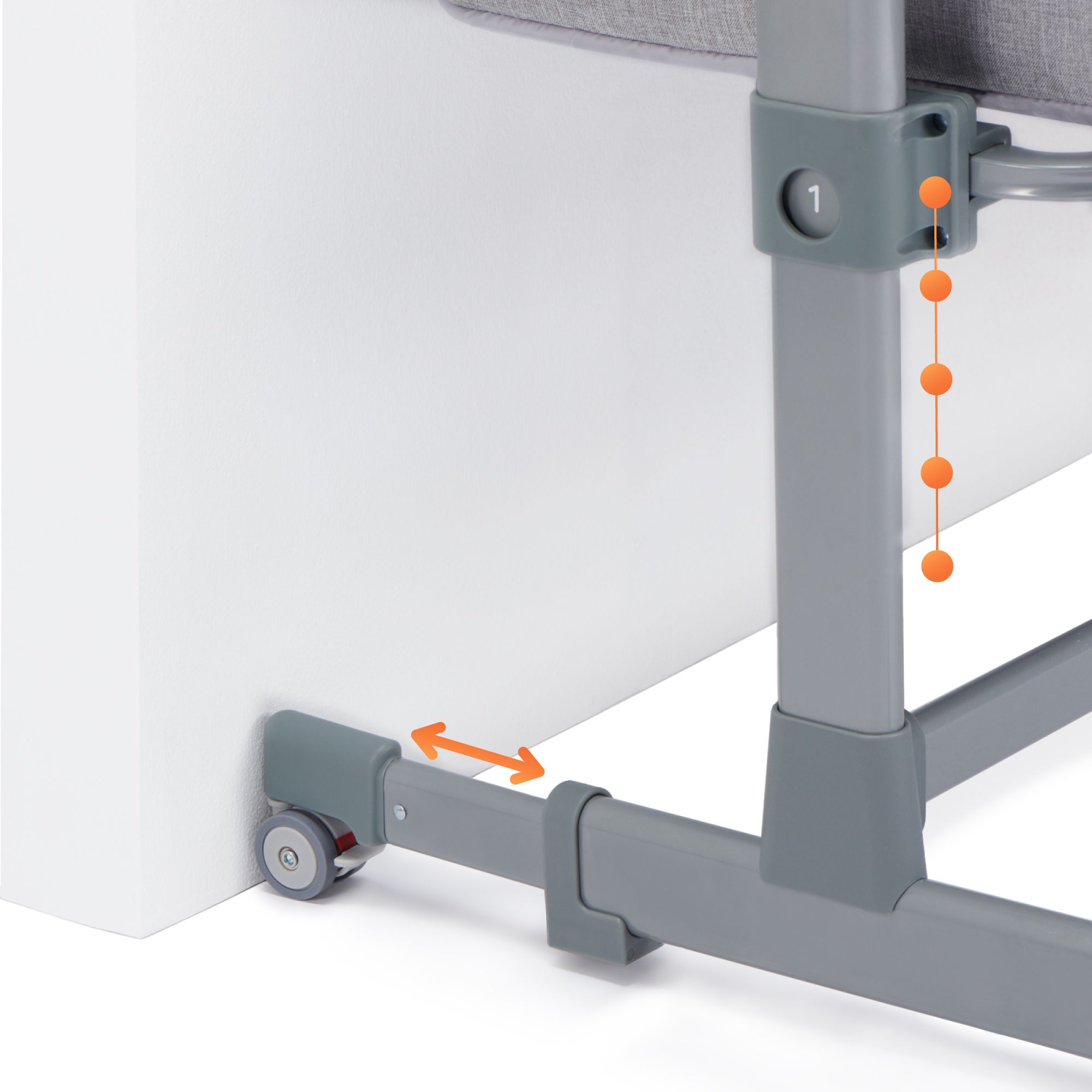 - простая и безопасная система крепления к родительской кровати при помощи длинных ремней и автоматической регулировки ножек;