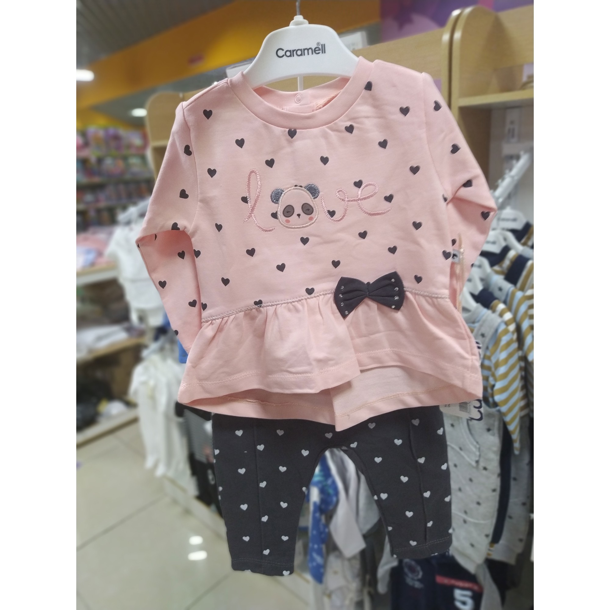 Детский комплект для девочки из 2-х предметов свитшот и штаны Caramell серия Sweet Panda. Размер 68-74 см.