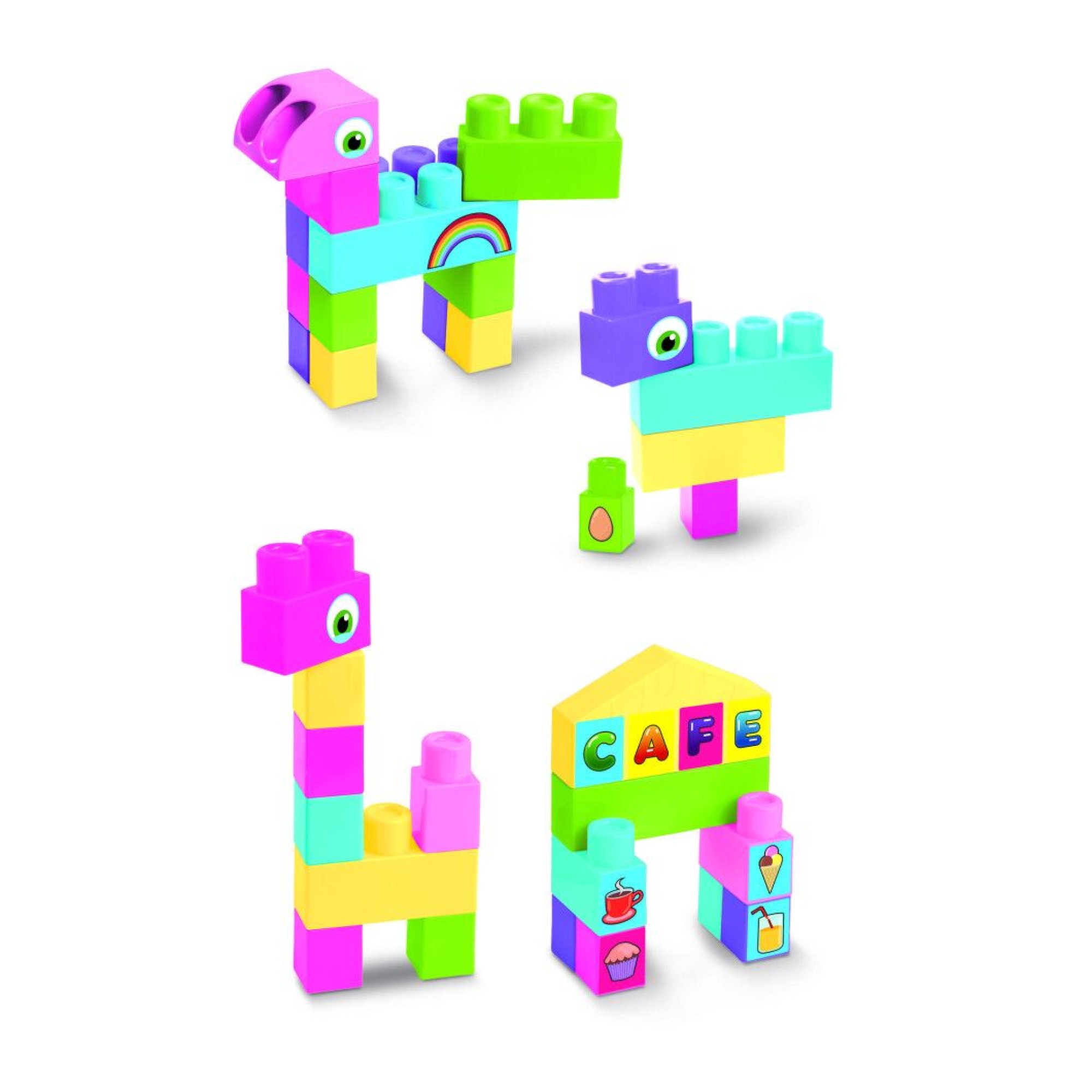 Big Blocks – набор конструктора в коробке классических и пастельных цветов и современного дизайна, который заинтересует каждого малыша. В набор входят наклейки - цифры, буквы, фигуры, фрукты, овощи, животные из саванны и другие, что сделает игру еще интереснее. Легкая система крепления, а также подходящий размер делают эту игрушку идеальной для ручек самых маленьких детей. Создавая сначала простые, а затем все более сложные конструкции, ребенок развивает креативность, воображение и память. Играя конструктором Big Blocks, ребенок тренирует подготовленность ручек, точность захвата, зрительно-двигательную координацию и концентрацию внимания, изучает между прочим счёт, цвета и формы, развивает пространственное воображение (над, под, право, лево, сбоку), формирует понятие маленький - большой. Совместная игра конструктором с родителями или другими детьми также развивает коммуникативные навыки. Все элементы изготовлены из высококачественного безопасного и прочного материала, благодаря чему все части трассы будут сохранять вид и цвет на протяжении многих лет. Набор упакован в красивую коробку, идеальную для подарка.