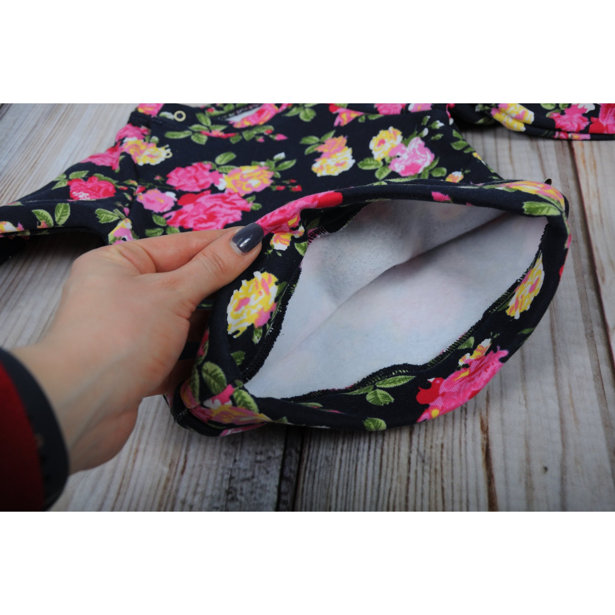Костюм MagBaby Розы на флисе имеет в горловине крепление на кнопочках. Кнопки использовались европейского международного производителя УКК, который изготавливает фурнитуру без никеля. Изделие сертифицировано и имеет санитарно-эпидемиологическое заключение, а также имеет дополнительные сертификаты на фурнитуру.