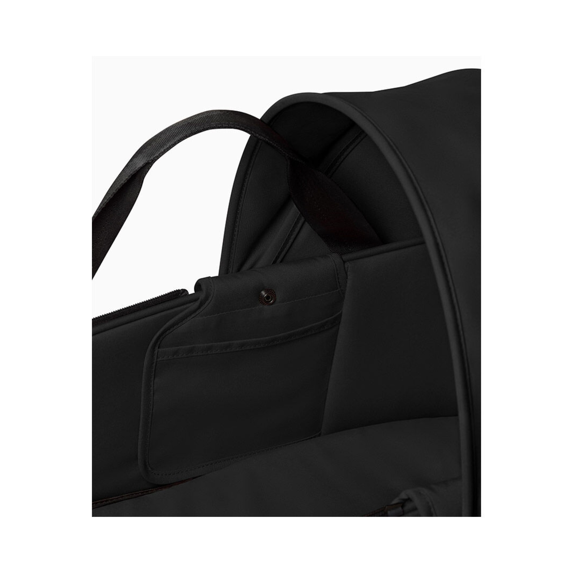 Люлька оснащена регулируемым капюшоном, вентиляцией и обволакивающим чехлом для ножек — всё для комфорта и безопасности малыша. Внутри предусмотрены два кармана для мелочей.