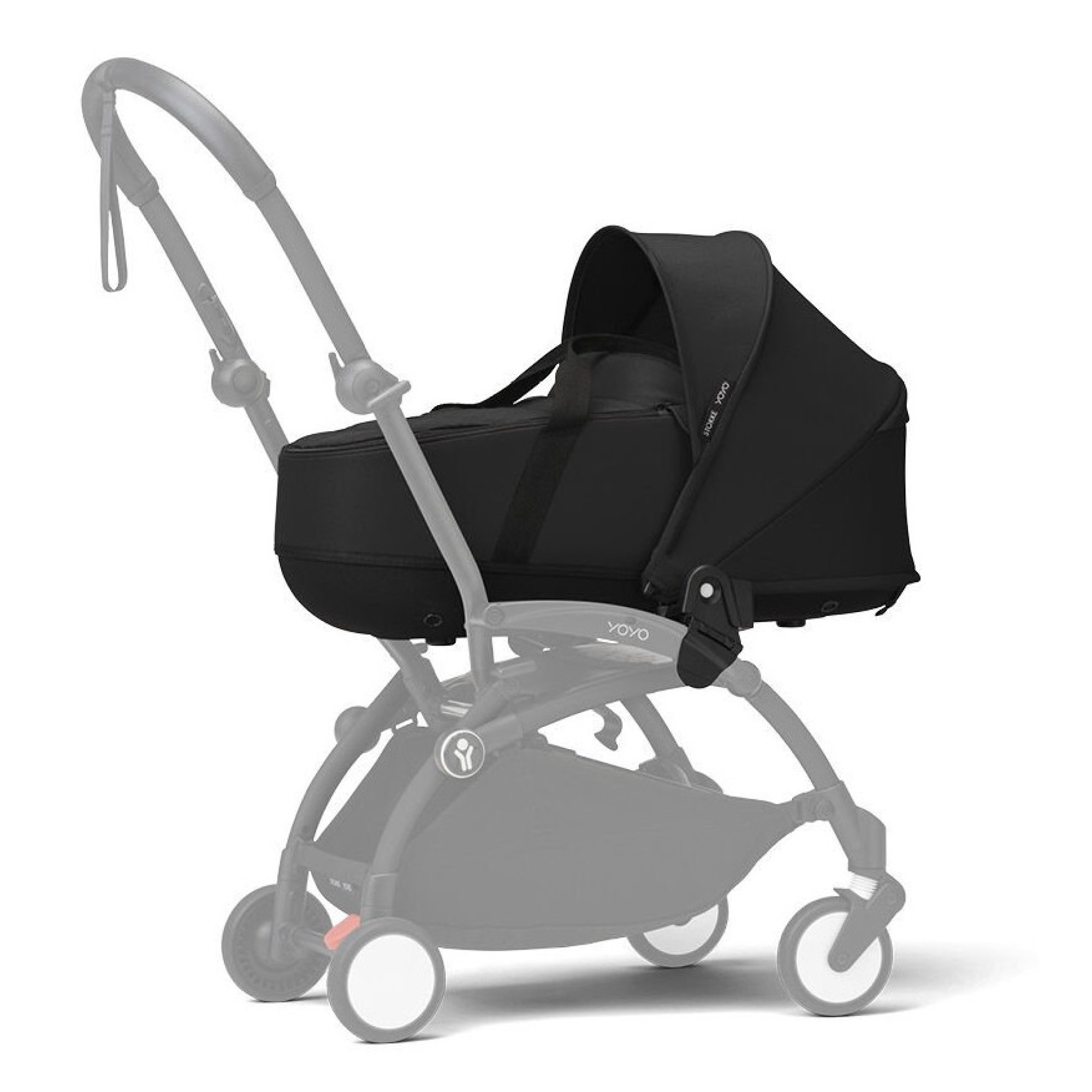 Люлька для новорождённого YOYO® крепится к раме YOYO³ одним щелчком, обеспечивая маневренность и гибкость. Она располагается сверху на раме коляски и позволяет вам быть ближе к ребёнку, который лежит на дышащем и очень уютном двойном матрасе.