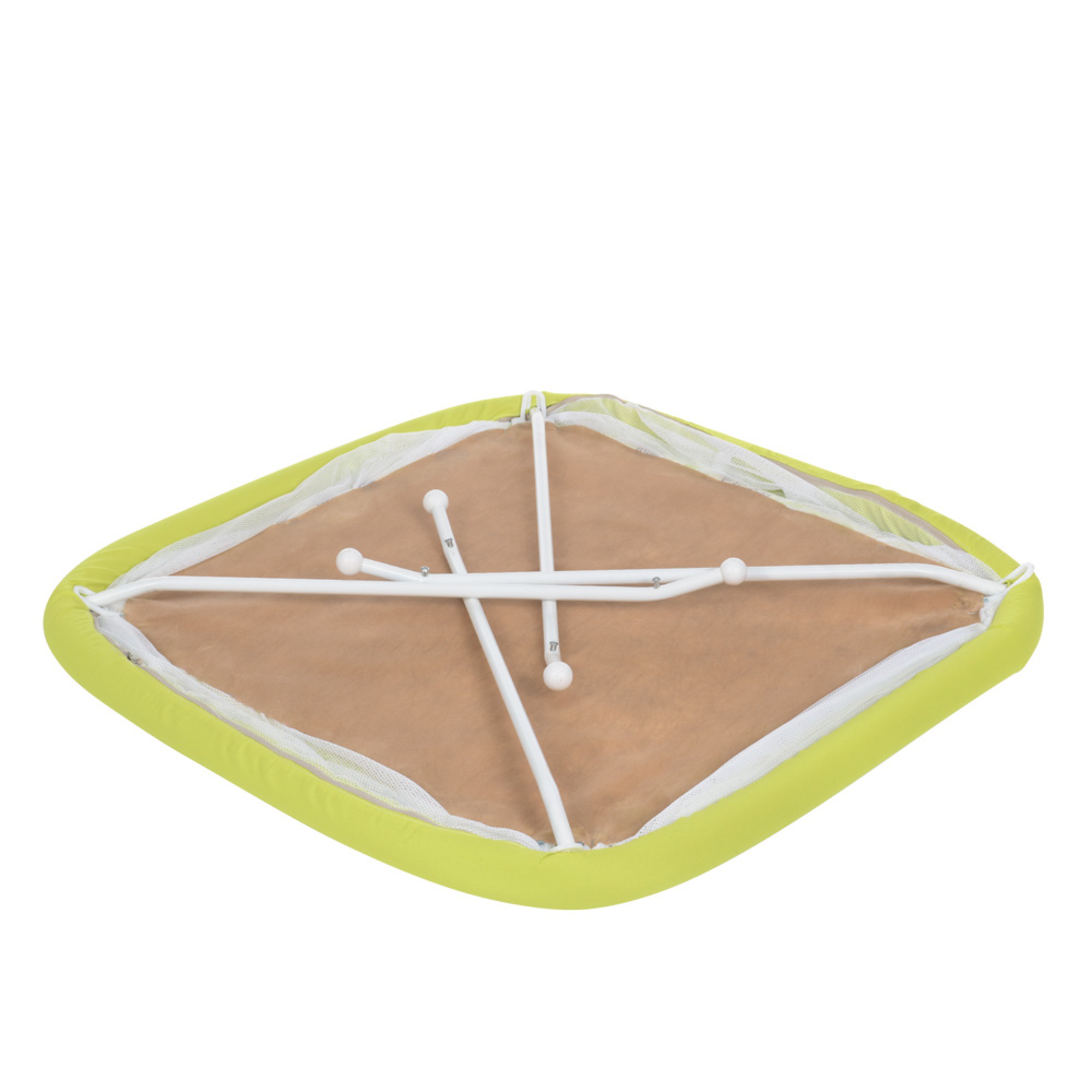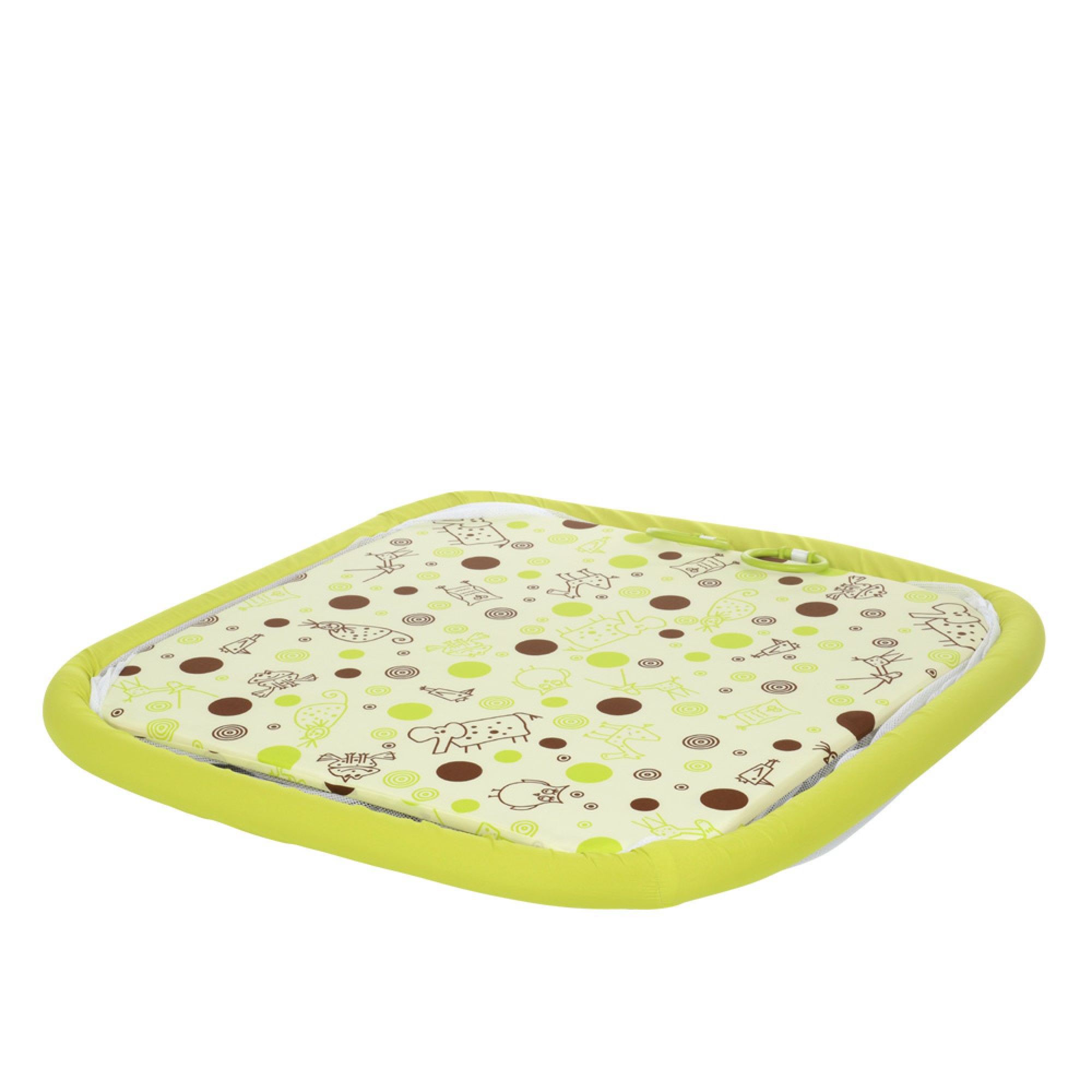 - Обруч и жесткие элементы манежа покрыты мягкой губкой, которая защитит ребенка от ударов.
