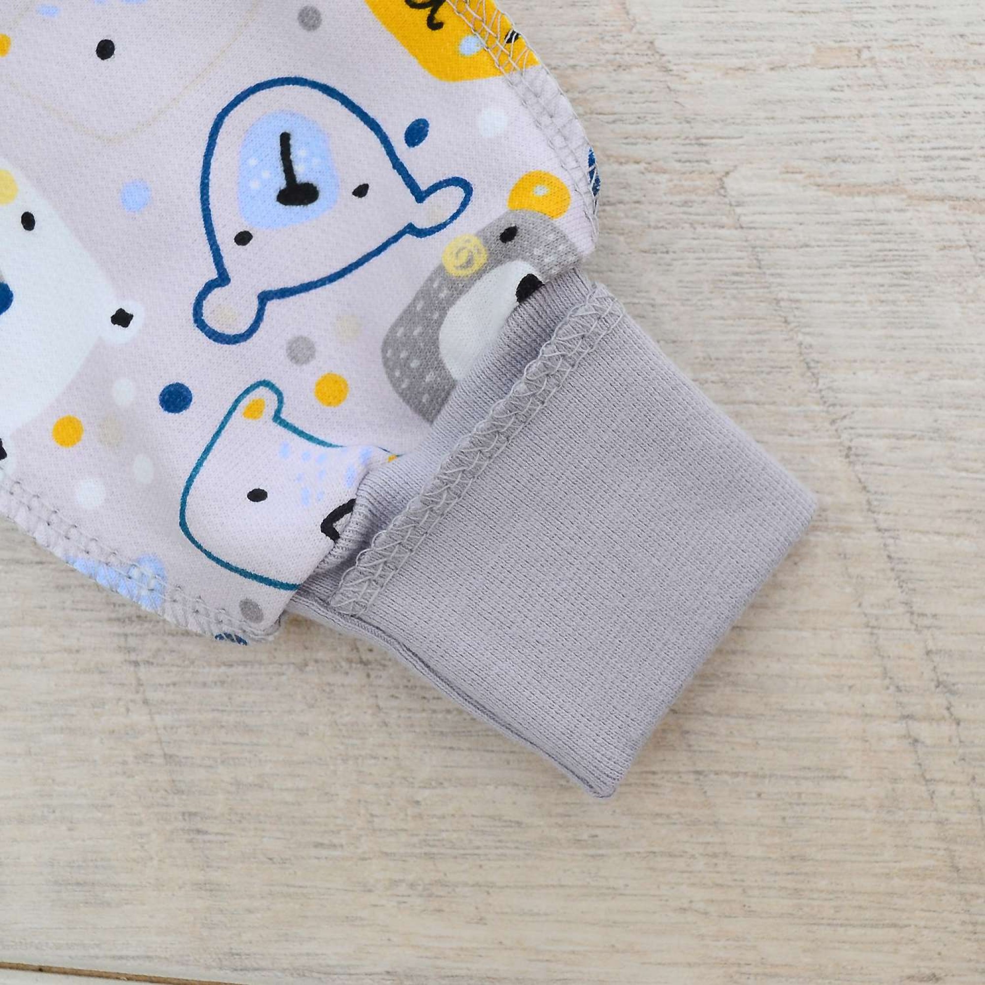 В этом комбинезоне у вас будет возможность закрыть и открыть ручки малыша, благодаря отвороту на запястиях.