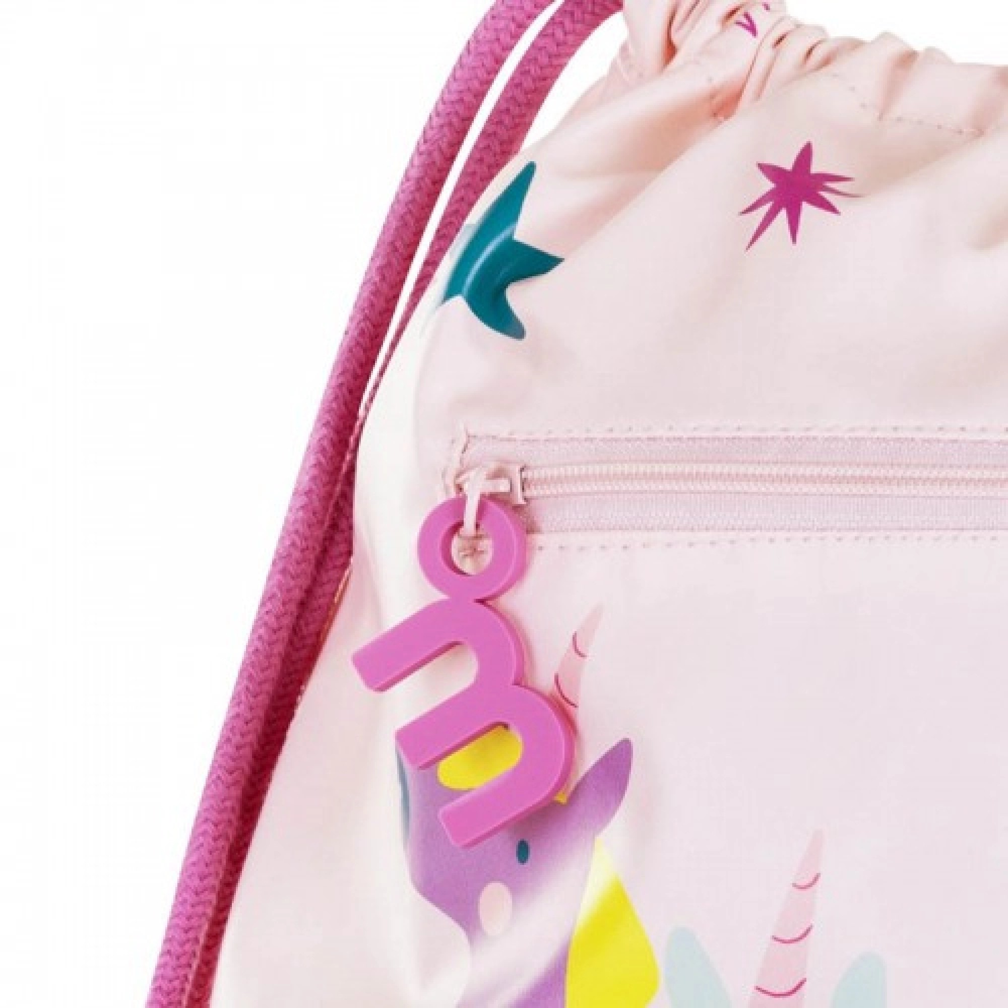 Рюкзак оснащен просторным основным отделением и внешним карманом на молнии для мелочей. Длина шнурков регулируется, что позволяет подстроить посадку под рост ребенка, а верхняя ручка обеспечивает удобство при переноске или подвешивании. Внутри предусмотрено специальное поле для имени ребенка — это удобно для детского сада или школы.