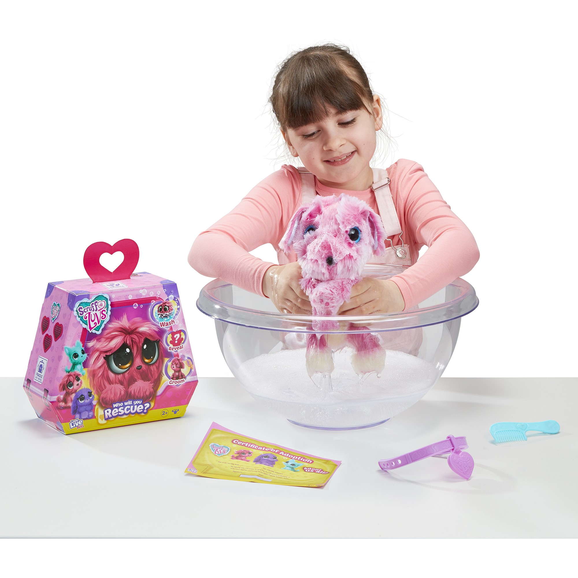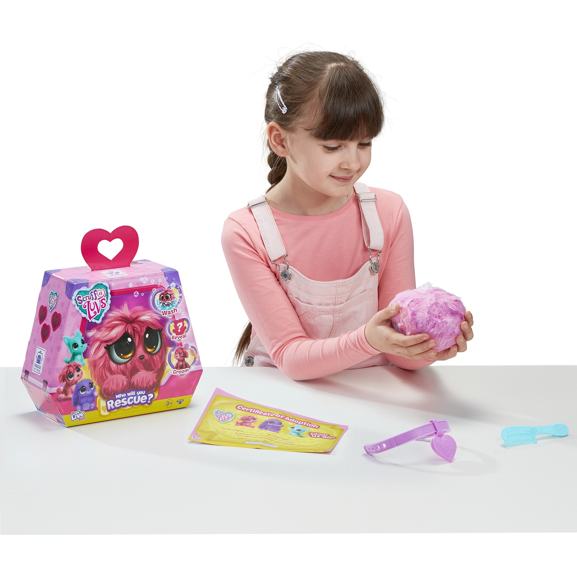 В картонной упаковке спрятано потрепанное и неряшливое существо, в котором сложно узнать милого зайчика, котенка или щенка. Чтобы «меховой шар» игрушка-сюрприз Scruff A Luvs превратился в плюшевого Няшку-Потеряшку, ребенок должен проявить заботу и любовь. Только бережный уход и внимание хозяина вернут зверьку привлекательный вид!
