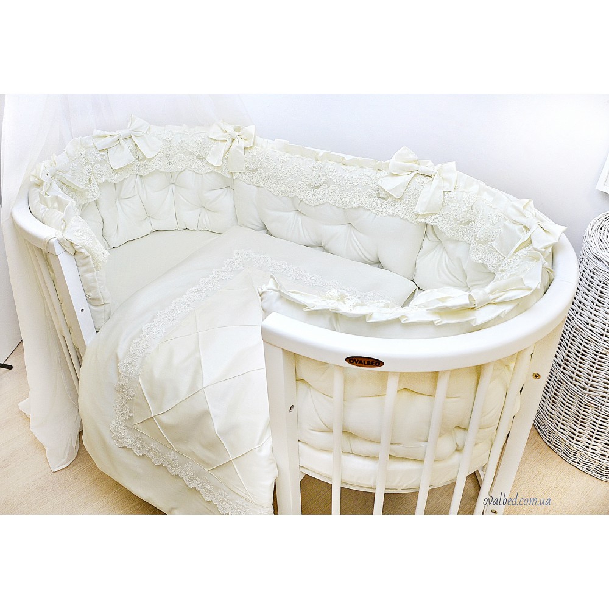 Постельное белье к кроваткам Ovalbed - изготовлено только из 100% хлопка Европейского и Корейского производства, в одеяле и подушках наполнителем служит гипоаллергенное силиконизированое волокно – синтепух.