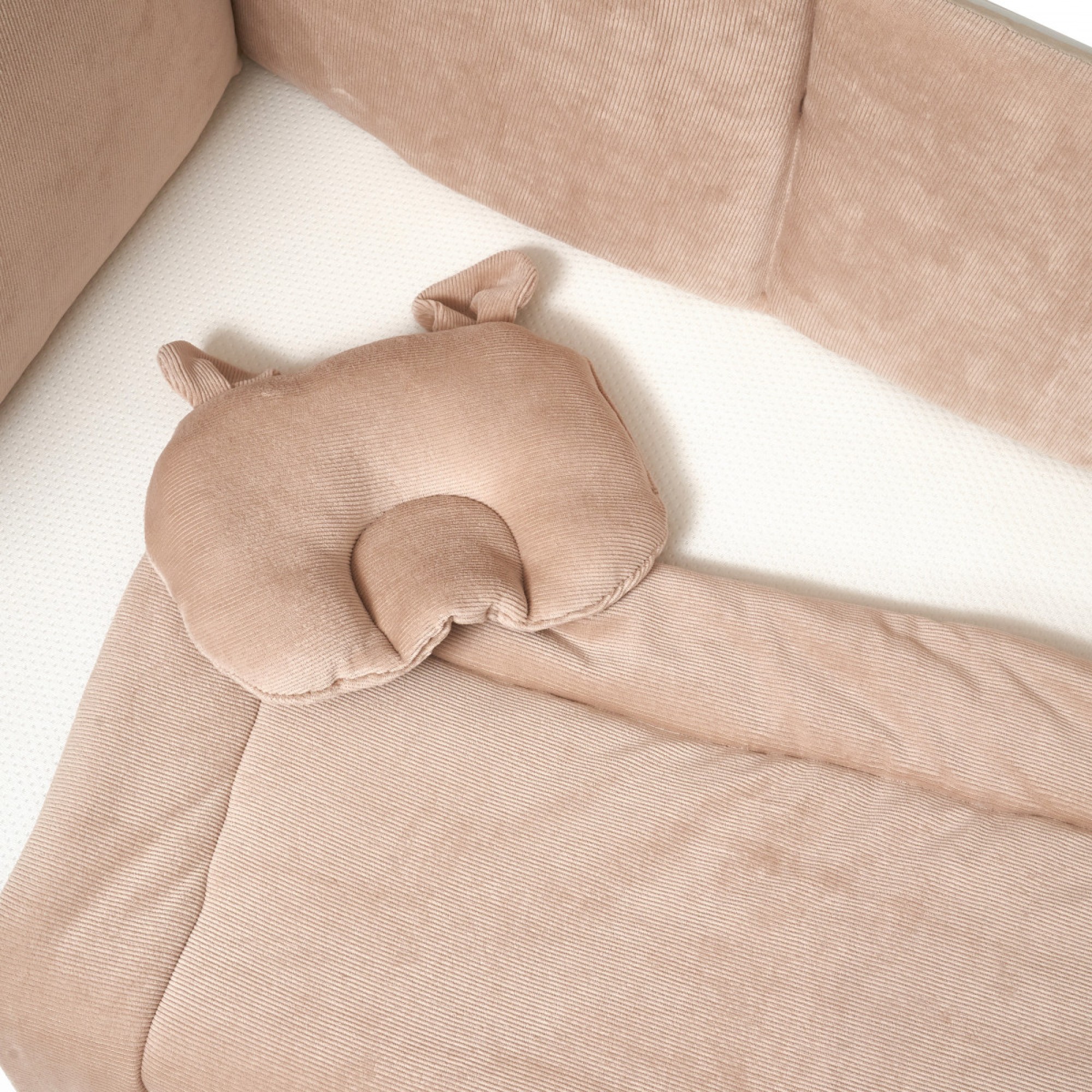 Состоит из ортопедической подушки, пледика и резинки, что трансформирует его в конверт.