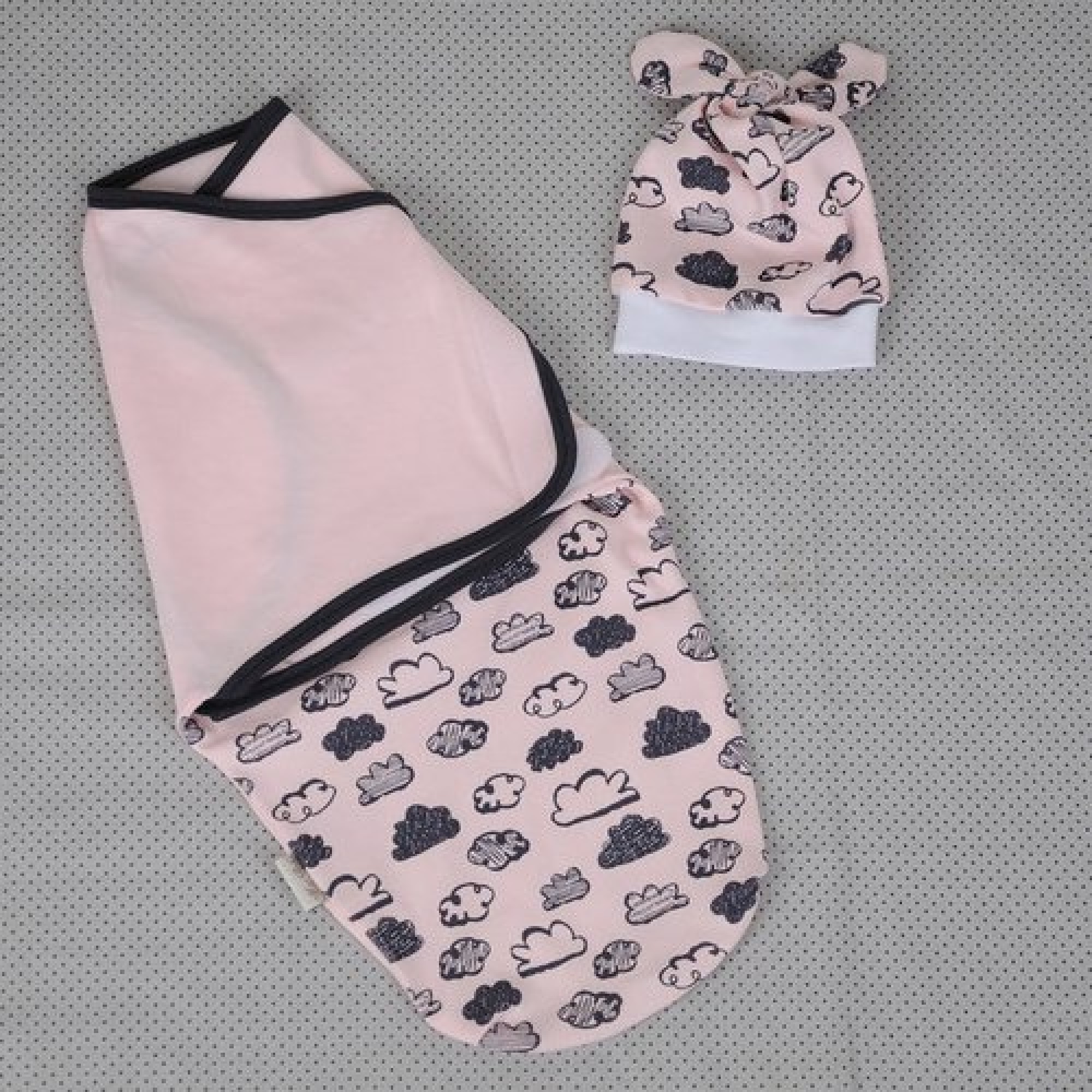 Пеленка кокон на липучках + шапочка MagBaby Облачка розовые (3-6 мес.) 100372