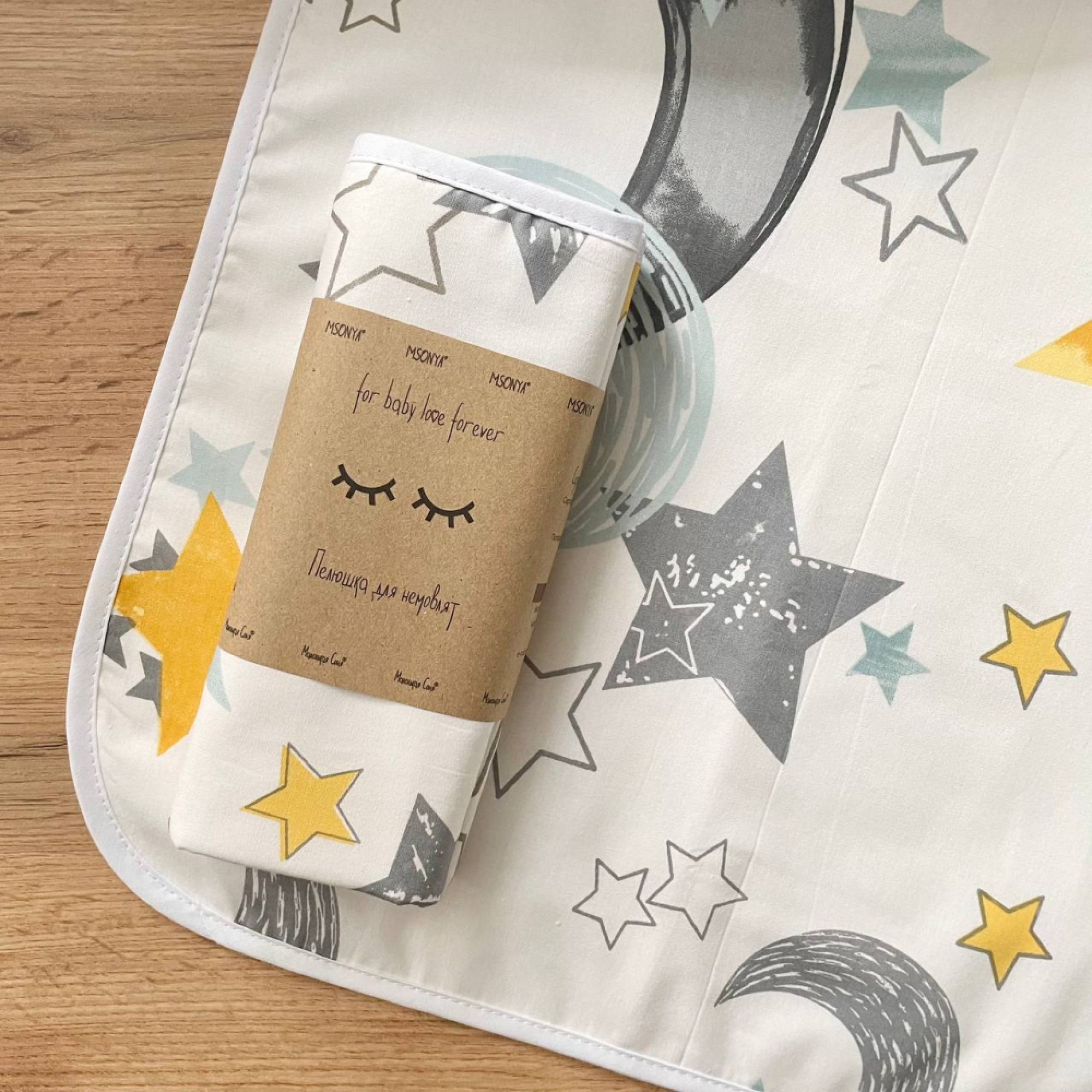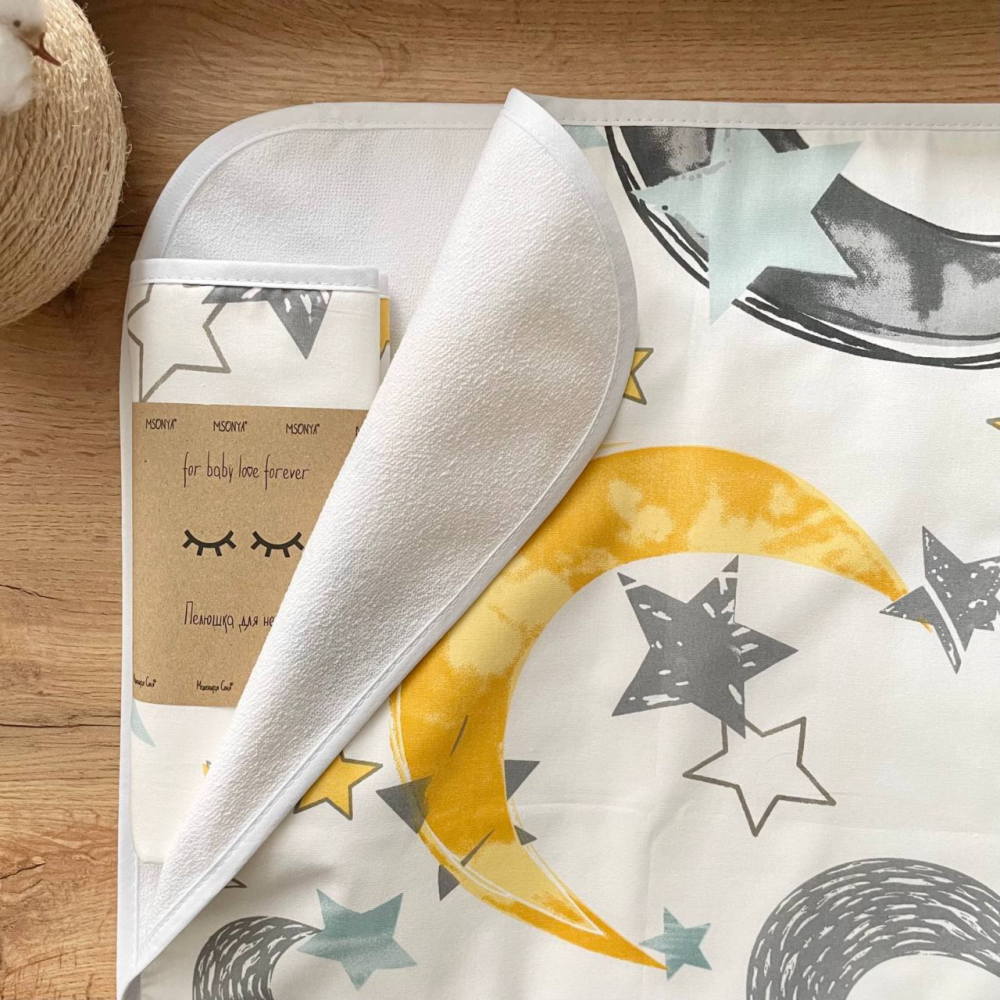 Непромокаемая пеленка Маленькая Соня 50*80 Звезды с месяцем, горчица (11596)