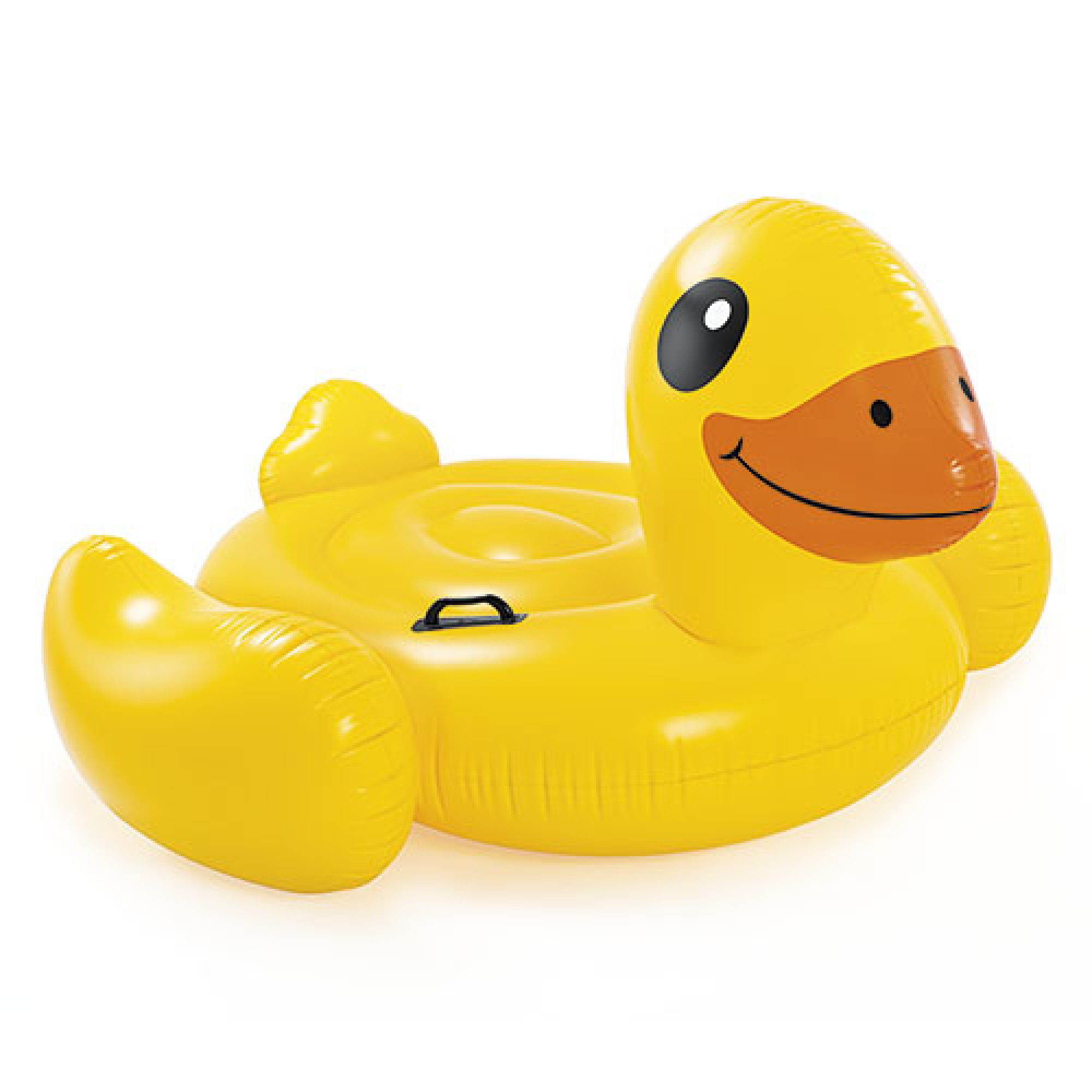 Плотик уточка с ручками Intex 57556 – яркий аксессуар на пляже для ребенка. Уточка надежно удержит на плаву. Плот выполнен из прочных материалов, которые устойчивы к разрывам и проколам. Уточка не сдувается во время использования, в ней предусмотрены ручки для удобства во время купания. Сдувать и надувать плот легко, в сложенном виде он не займет много места.
