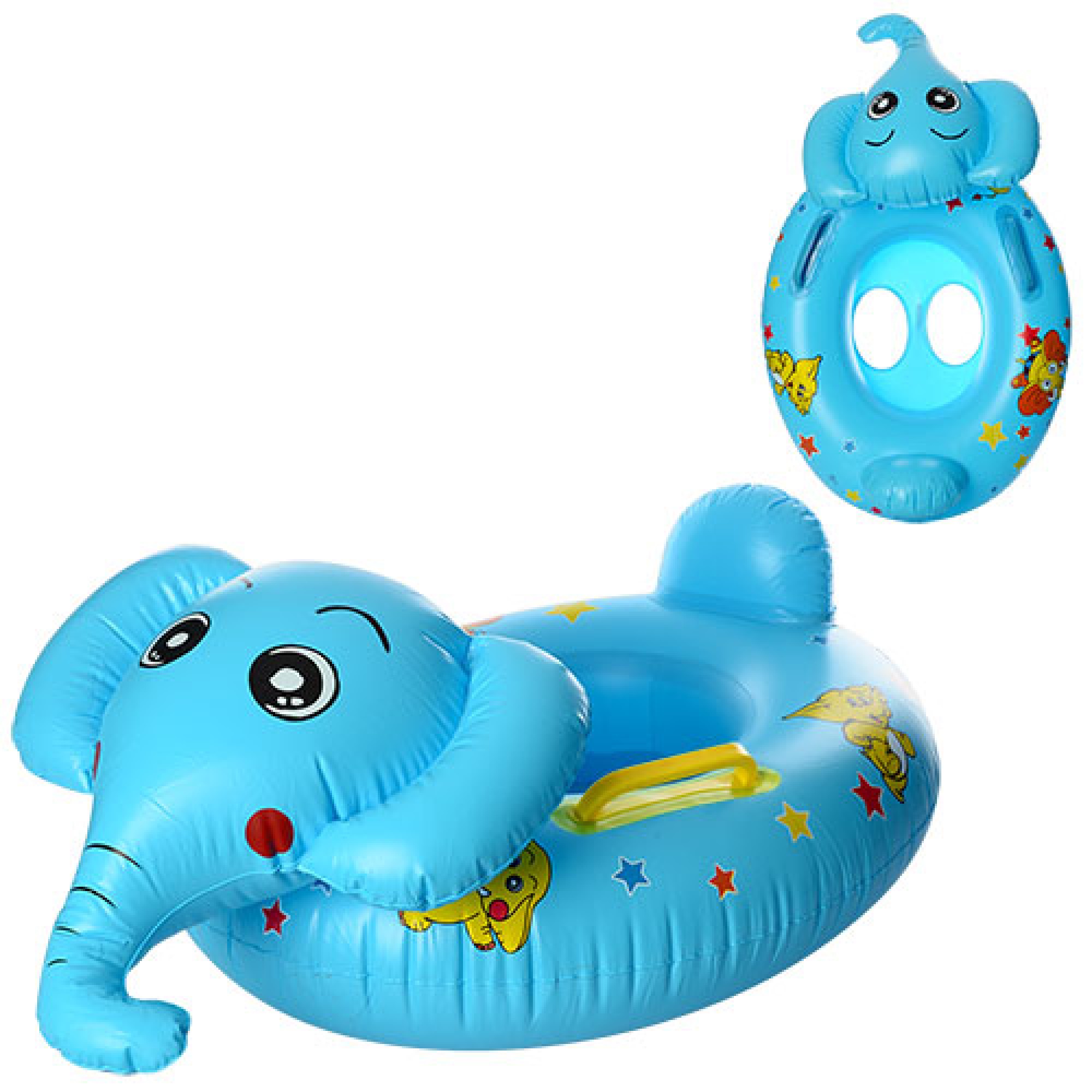 Плотик слоник MSW 005. Для удобства предусмотрены ручки. А форма придаст веселье во время купания. Плот удобно надувать и сдувать, он легко складывается для транспортировки. Во время купания он не сдувается, поскольку отверстие защищено специальным клапаном. Материал плота – винил, который не деформируется и не прокалывается. Для безопасности предусмотрены две удобные ручки-держатели.