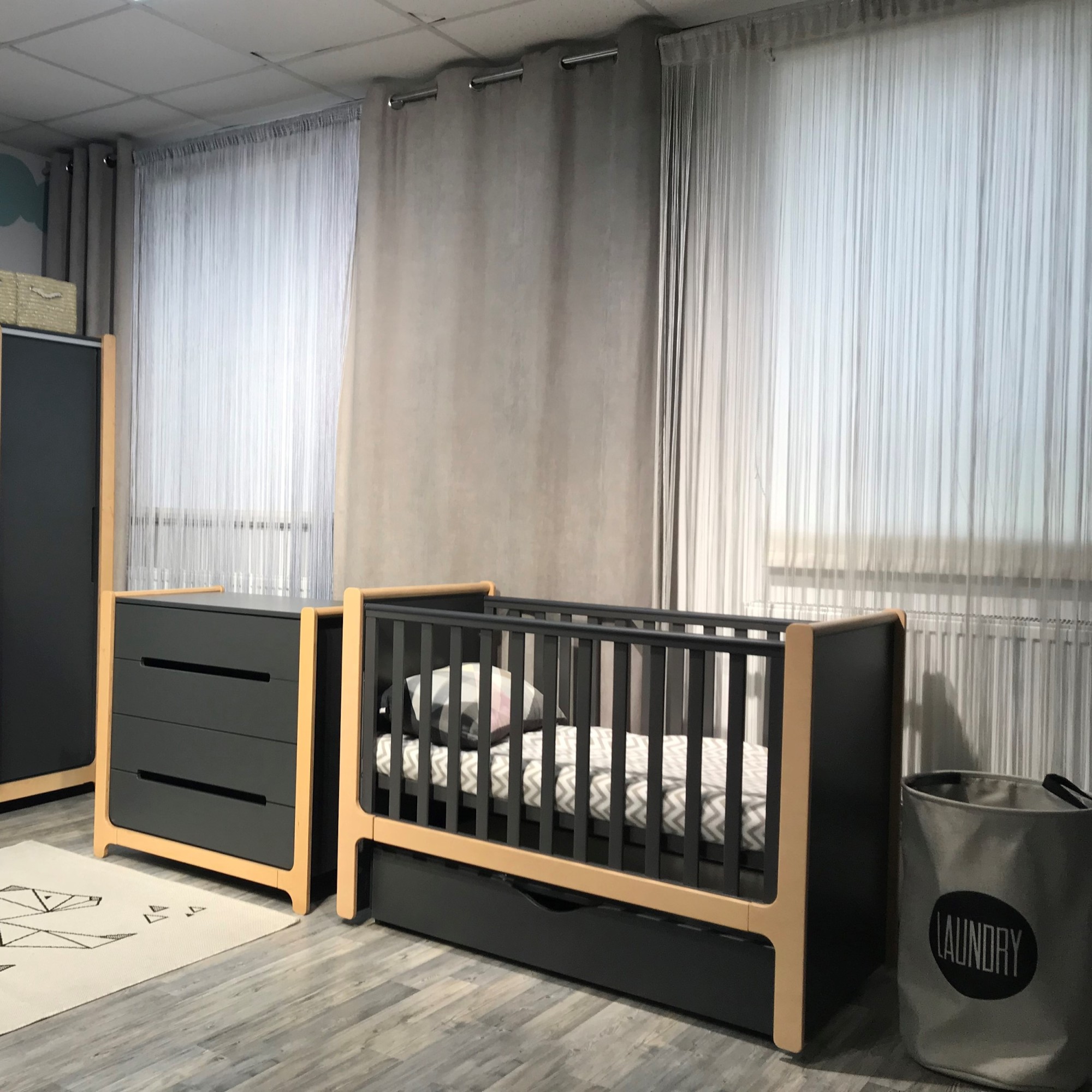поперечный маятник с ящиком для кроватки Nice • Anthracite Natural | Темно-серый