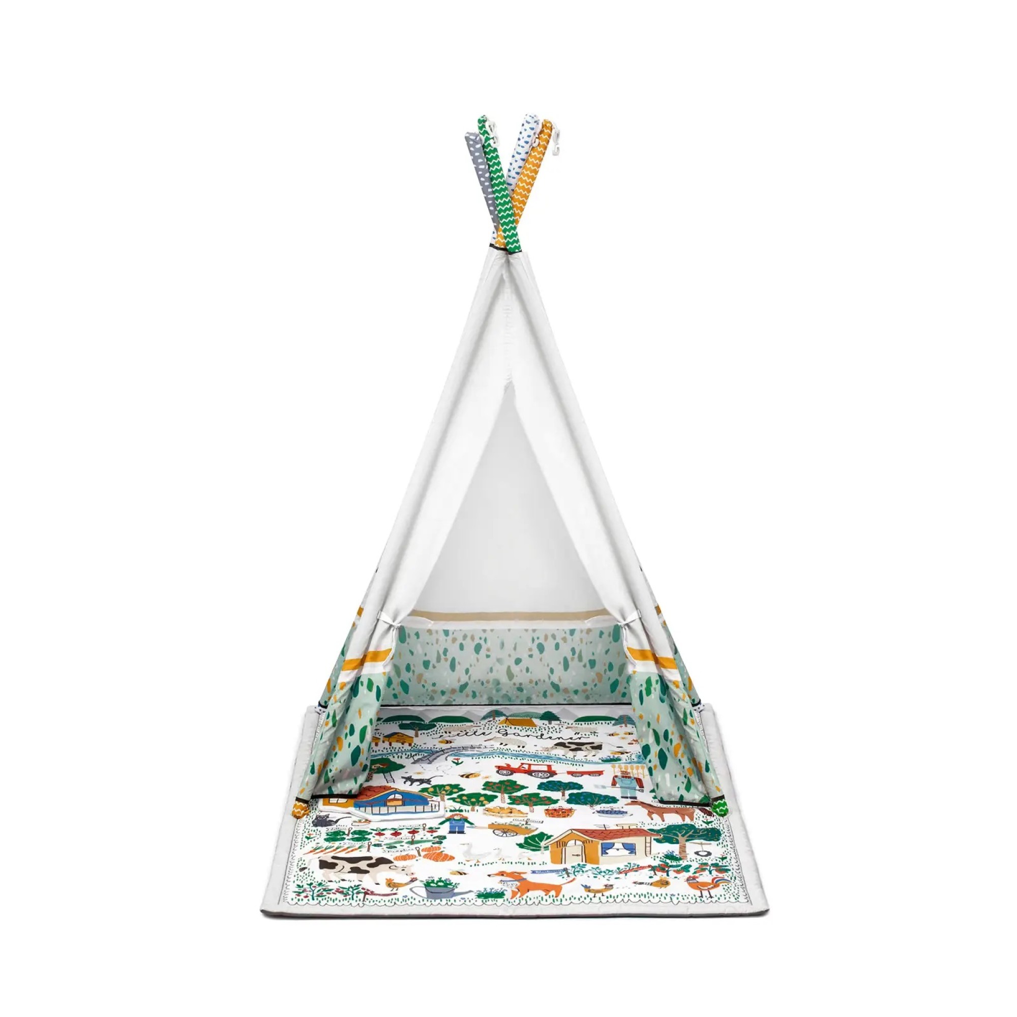 Little Gardener – это, прежде всего, большой развивающий коврик с палаткой. Быстро станет любимой базой для ребенка любого возраста. В палатке имеются 2 окна с тканевыми занавесками. Вы не только сможете тихонечко подсматривать за тем, что делает ваш ребенок, но и играть с ним в «Ку-ку!» Дуги сделаны из мягкого поролона, благодаря чему ребенок будет в безопасности даже во время самых смелых шалостей.