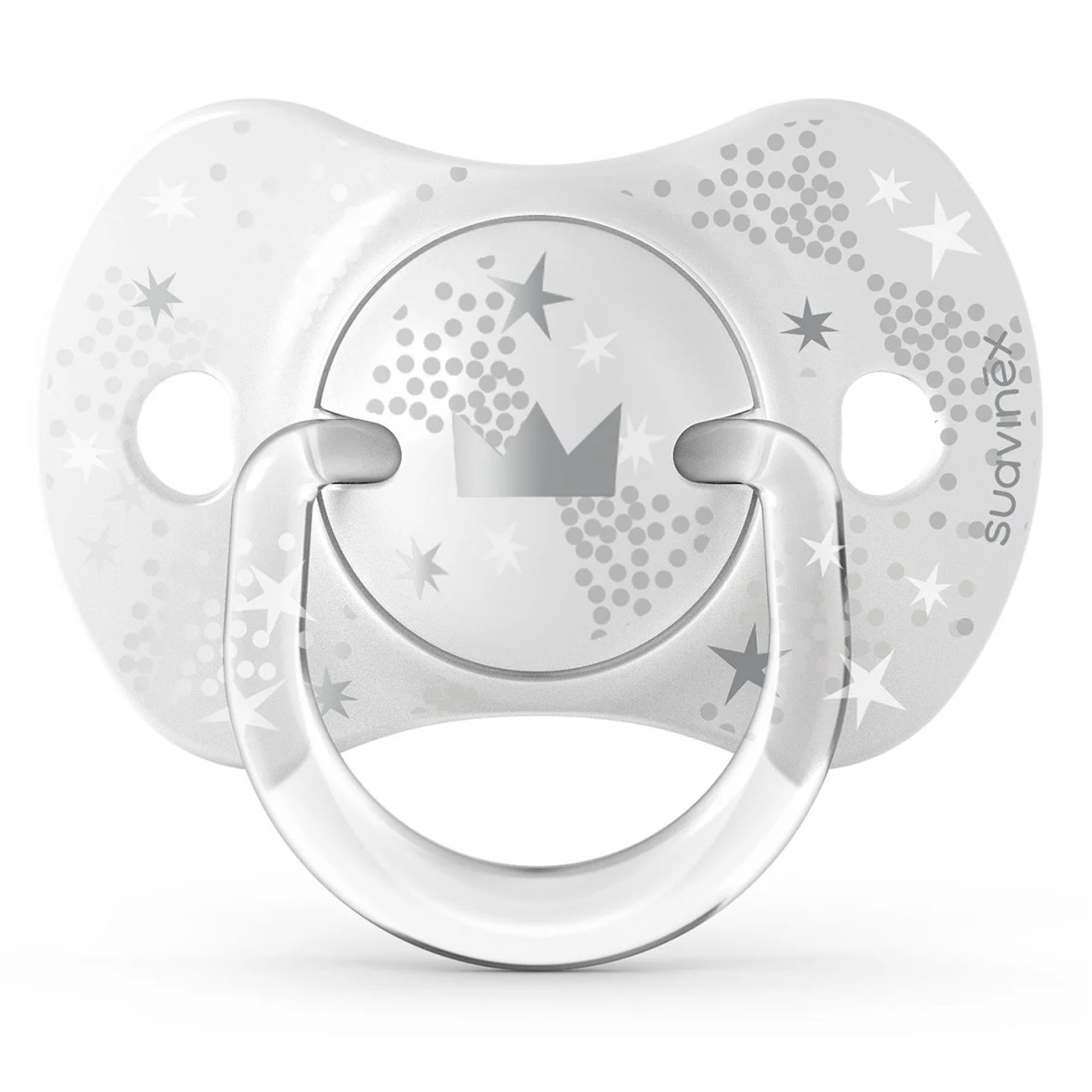 Пустышка физиологическая Suavinex Spread joy Волшебные истории 6-18 месяцев серебряная корона 2 шт (307333)