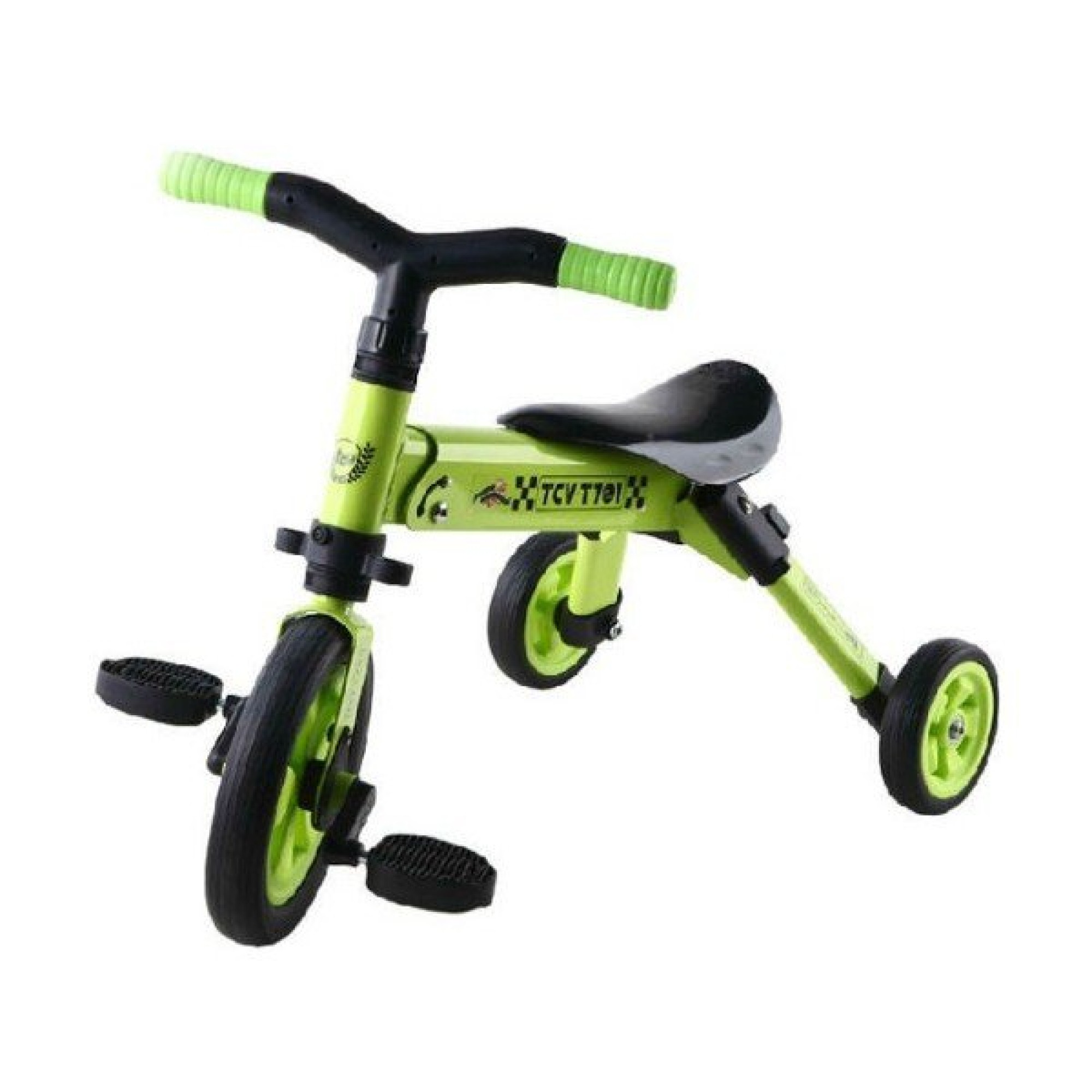Складной 3-х колесный велосипед TCV 2 в 1 (зеленый T701 (G)) - может функционировать как беговел (без педалей) и как велосипед (педали легко прикручиваются). Учит ребенка держать равновесие, концентрировать внимание, координировать движения, чувствовать скорость.