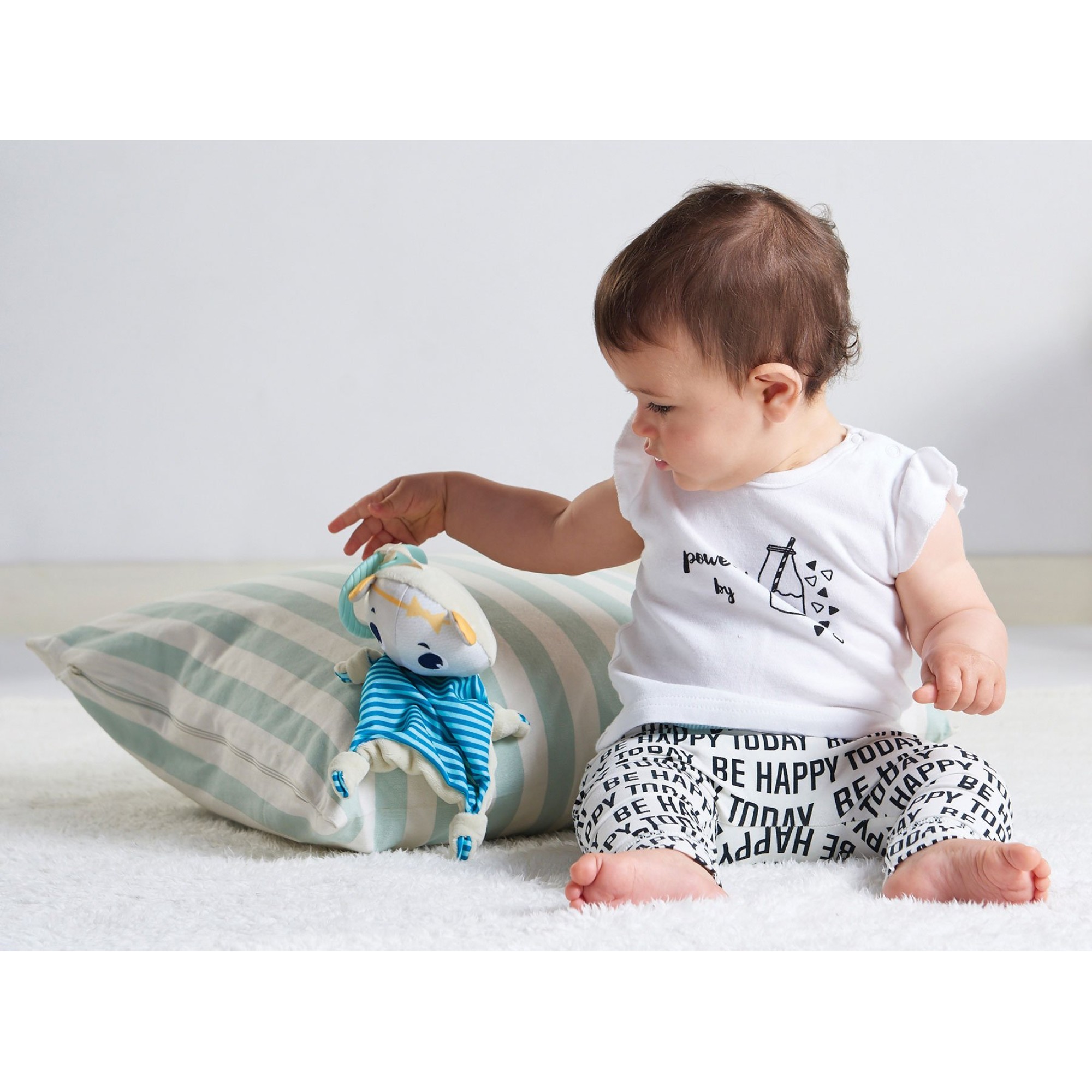 - 0-2+ месяца - держите игрушку на расстоянии около 25см от лица вашего ребенка и, после того как ребенок сфокусируется на медвежонке, медленно перемещайте ее из стороны в сторону.