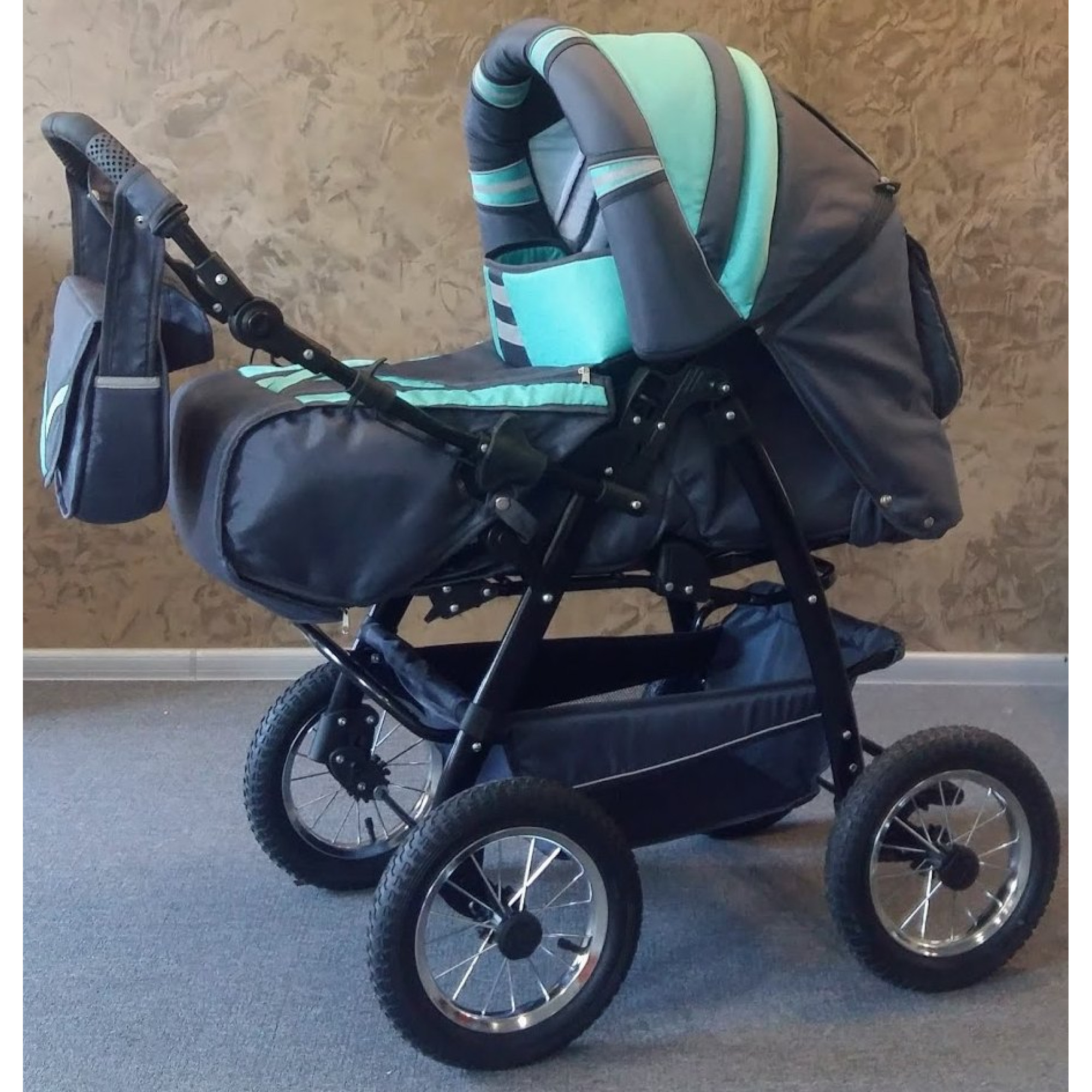 Амортизаторы крепятся на каждом колесе, что обеспечивает коляске «мягкий ход». Усовершенствовать это качество данной модели позволяют пневматические шины, ими детская коляска комплектуется по желанию клиента. Пневматические шины заставят Вас забыть о неровных дорогах, ведь теперь во время прогулки вы будете абсолютно спокойны за своего малыша.