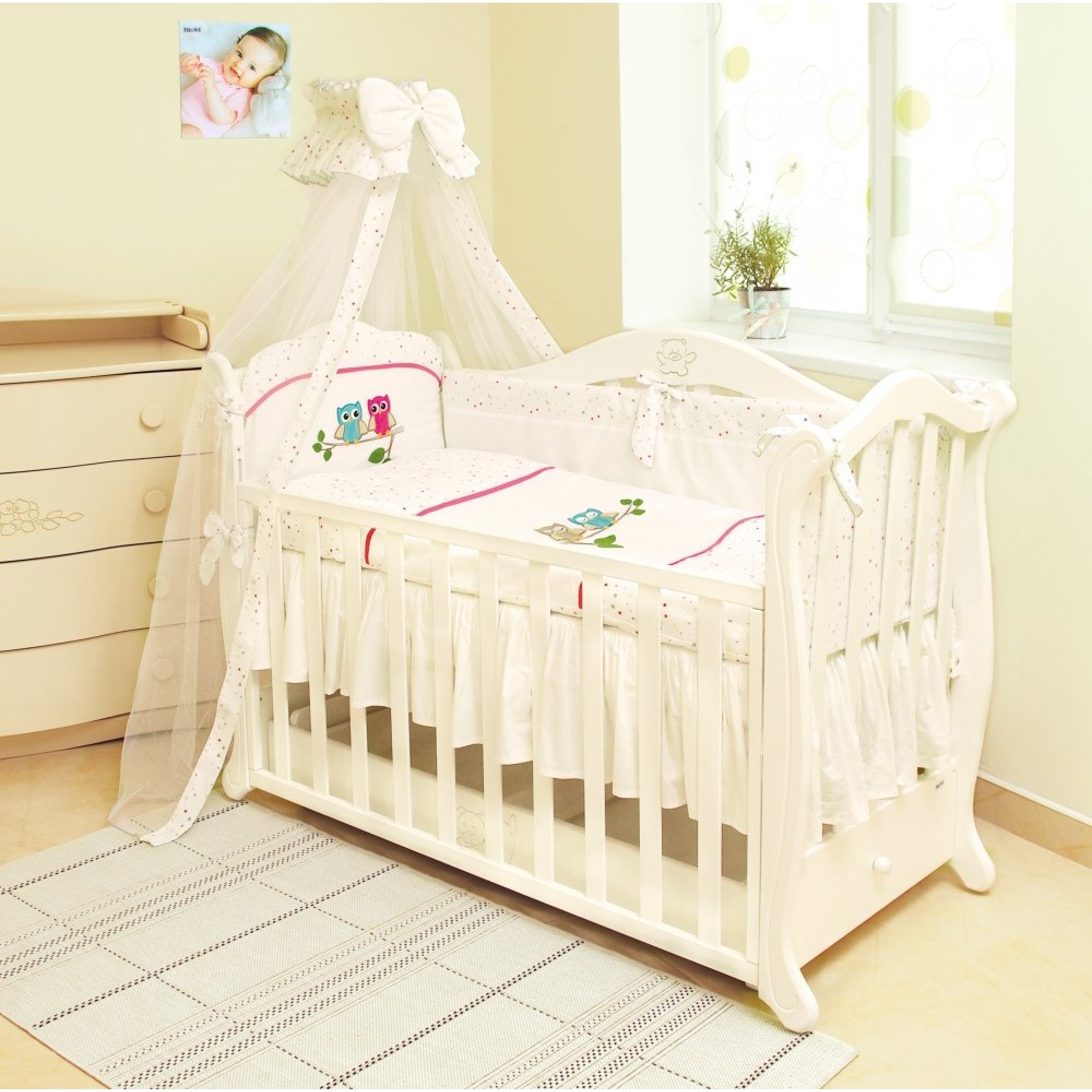 Постельный комплект Twins Evolution А-020 "Сова" бело-розового - детское постельное белье высочайшего класса. Комплект обеспечивает малышу здоровый и спокойный сон. Для производства использовался 100% хлопок, который прост в использовании, стирке и глажке.