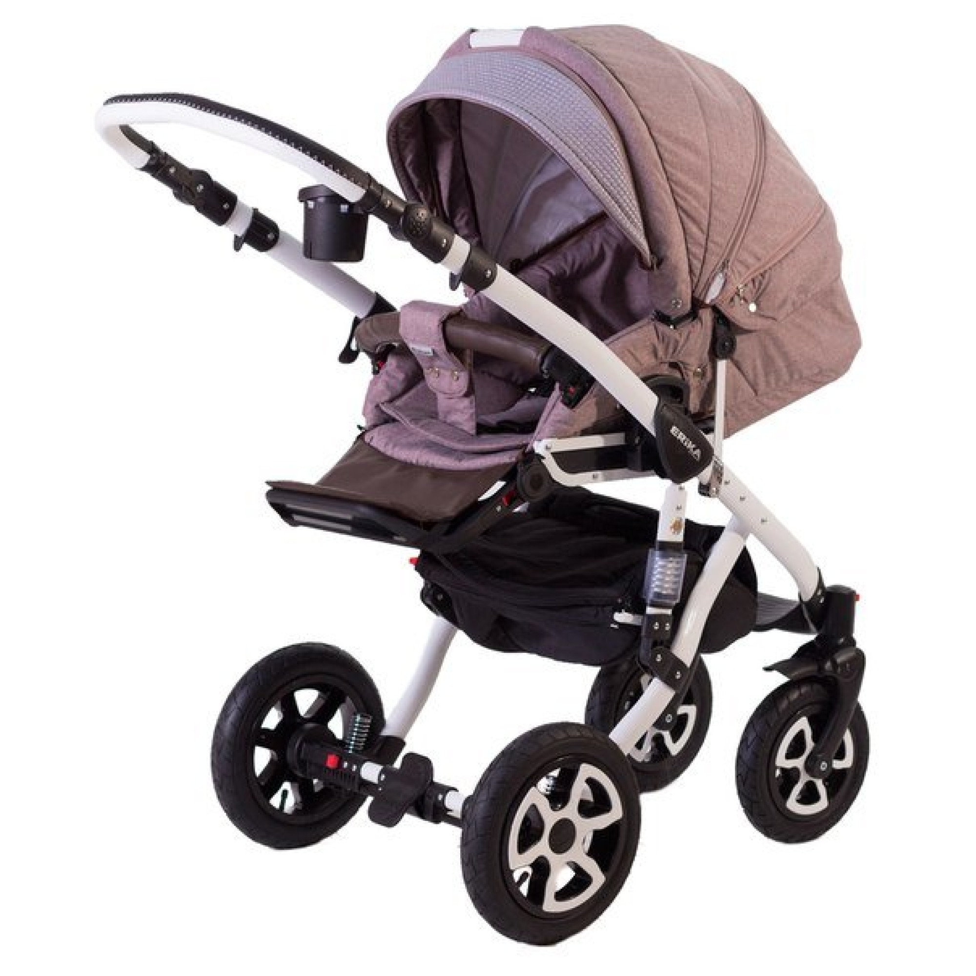- надувні колеса та подвійна амортизація забезпечують м'який хід;