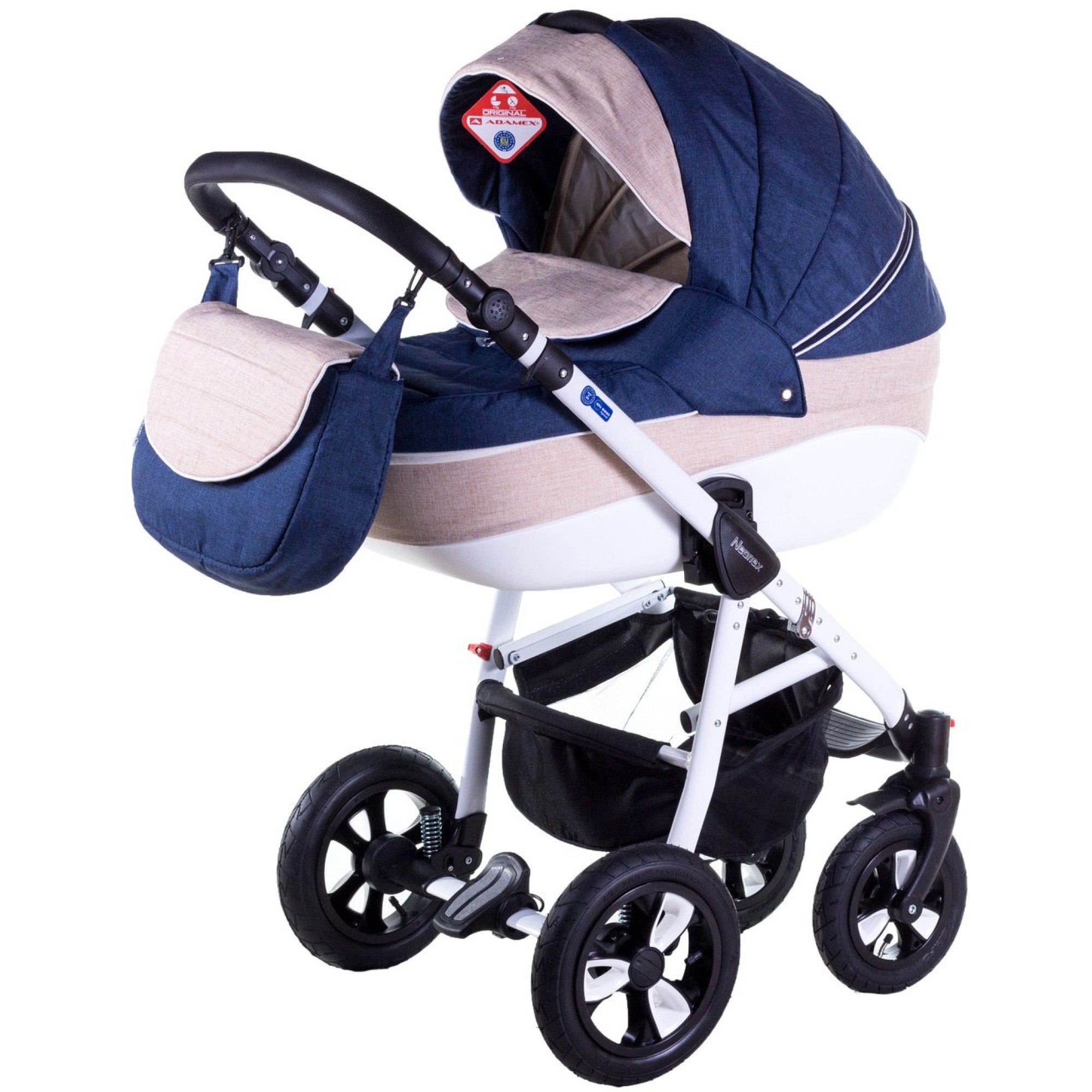 Adamex Neonex Tip 12-B (Адамекс Неонекс) дитяча коляска 2 в 1. Безпека, легкість та надійність - у цій моделі є всі основні якості. Оббивка люльки та прогулянкового блоку виконана з якісної коляскової тканини, з імітацією під різну текстуру, а також бавовни всередині люльки. Ця модель відрізняється невеликою вагою та сучасними оригінальними формами. Завдяки поворотним переднім колесам з коляскою легко пересуватися як у тісних міських умовах, так і за містом, забезпечуючи вашій дитині повний комфорт.