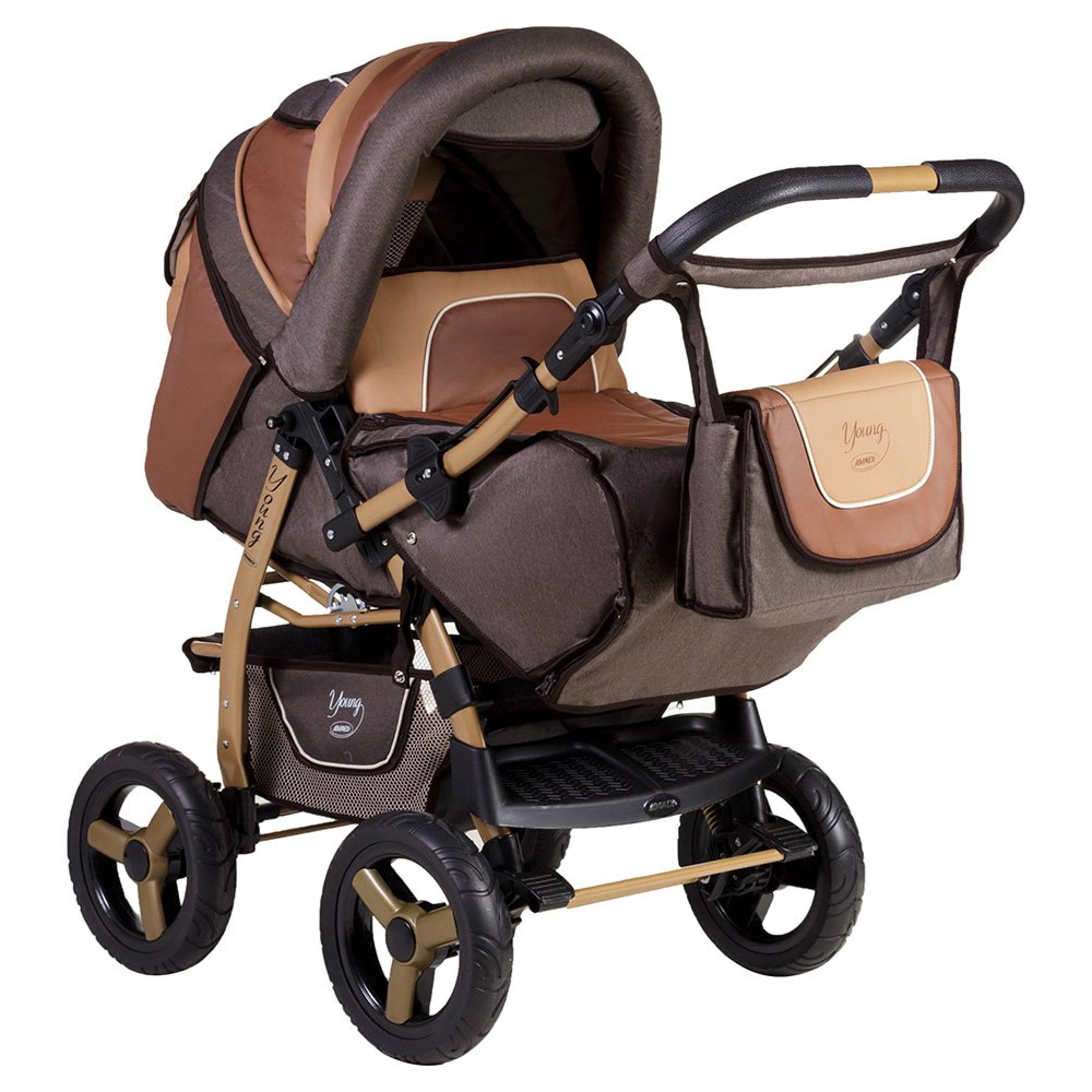 Коляска-трансформер Adamex Young Шоколад, карамель (Адамекс Янг шкіра)