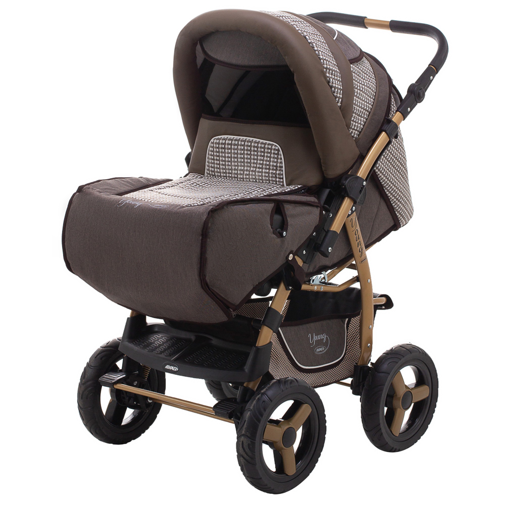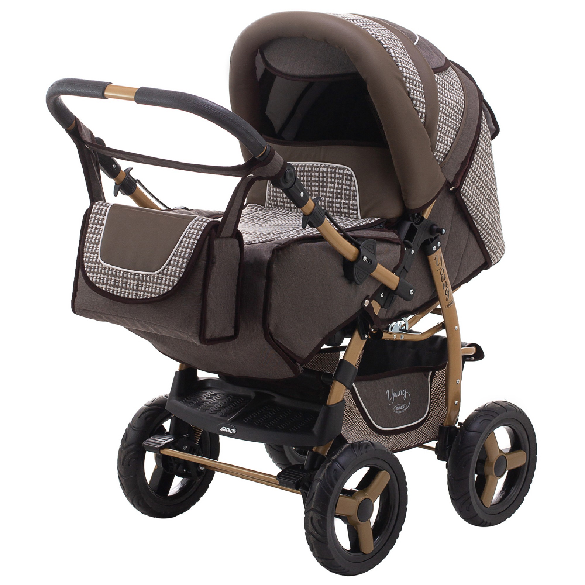 Коляска-трансформер Adamex Young шоколад (шкіра) - коричневий (плетіння)