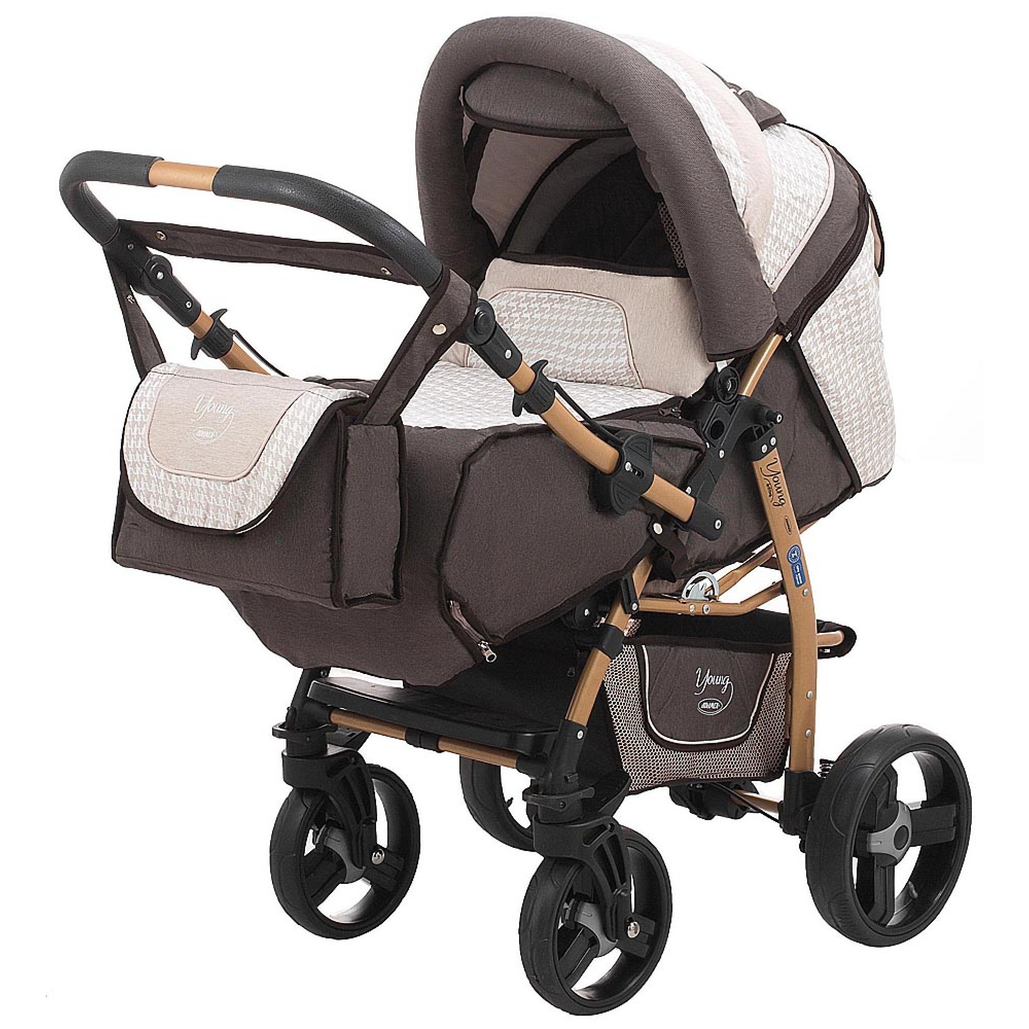 Коляска-трансформер Adamex Young Drifting шоколад - бежевий - бежевий (візерунок)