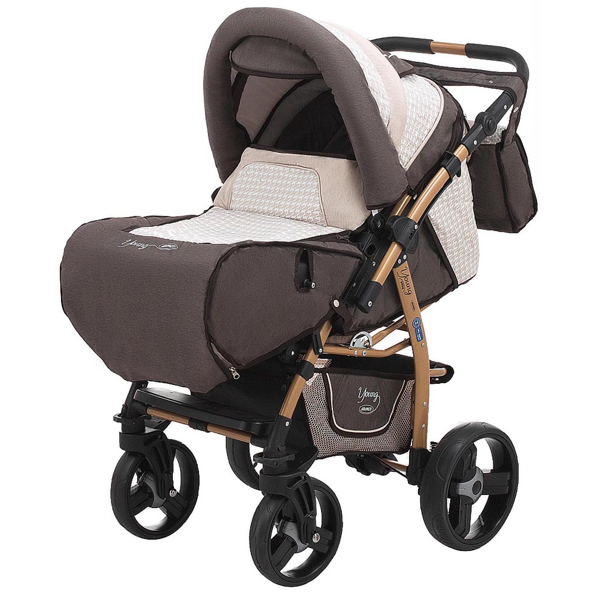 Adamex Young - коляска-трансформер, яку можна використовувати як взимку і влітку, так і в міжсезоння. Ця коляска розрахована на дітей від народження і до трьох років, включно. Карапуз, в перші шість місяців свого життя, з комфортом проводить час в колисці перенесенні. Її можна легко трансформувати в прогулянковий варіант коляски. У ній ваша дитина буде із задоволенням кататися і пізнавати навколишній світ до трьох років.