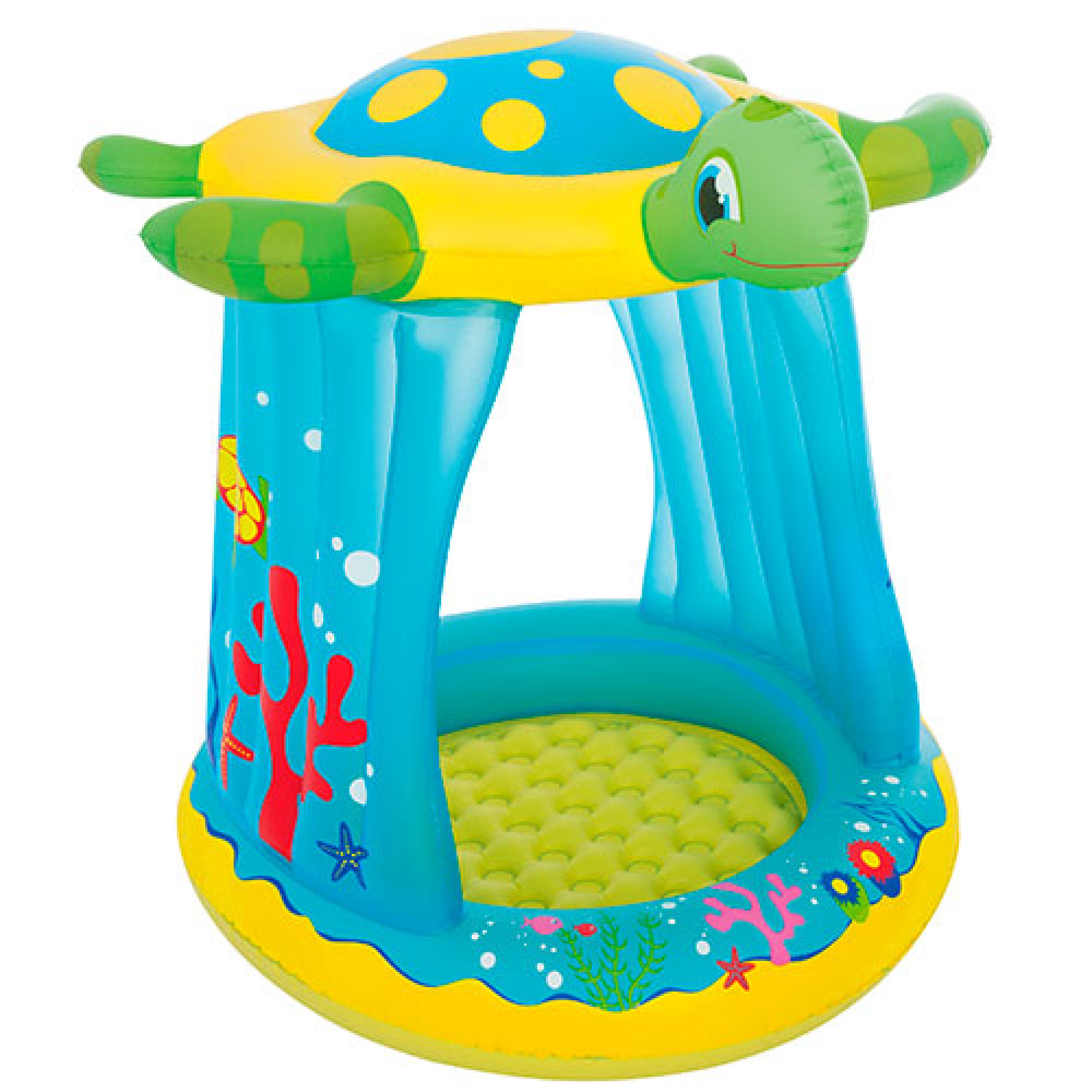 Басейн Bestway Черепашка BW 52219 - це компактний дитячий басейн, який стане для вашого малюка улюбленим ігровим майданчиком. На м'якій підлозі дитині буде комфортно, навіть якщо конструкція стоїть на землі. Дах у формі черепашки захистить дитину від сонця. У такому басейні дитина з радістю плескатиметься цілий день.