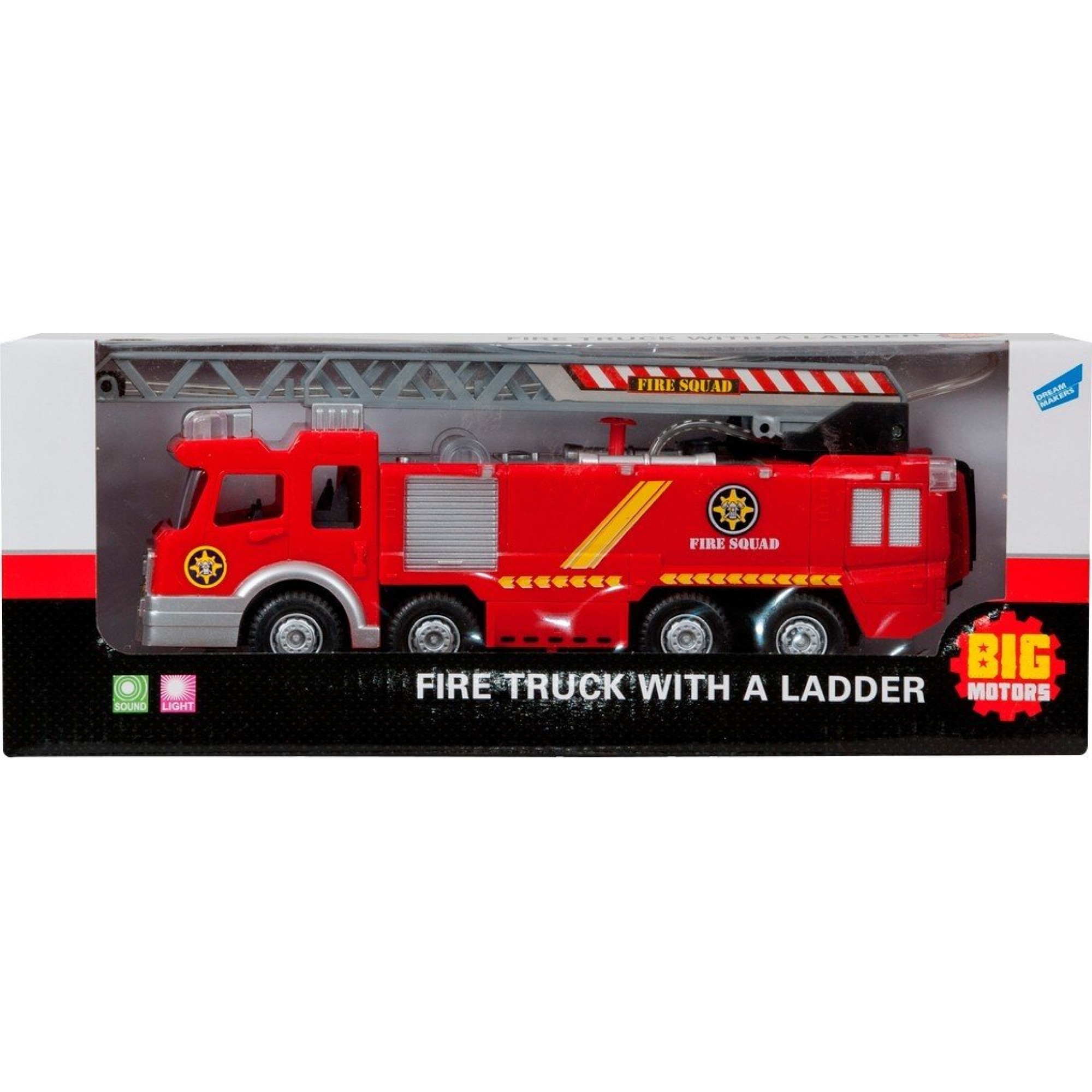 Пожежна машина зі сходами (Big Motors SY732) - порадує малюка яскравим червоним забарвленням і дасть можливість побути в ролі маленького рятувальника. Пожежна машина іграшка має у своєму арсеналі великі сходи, які дуже допомагають у процесі гасіння вогню. А натискаючи на кнопочки на корпусі, можна почути звуки справжньої пожежної машини.