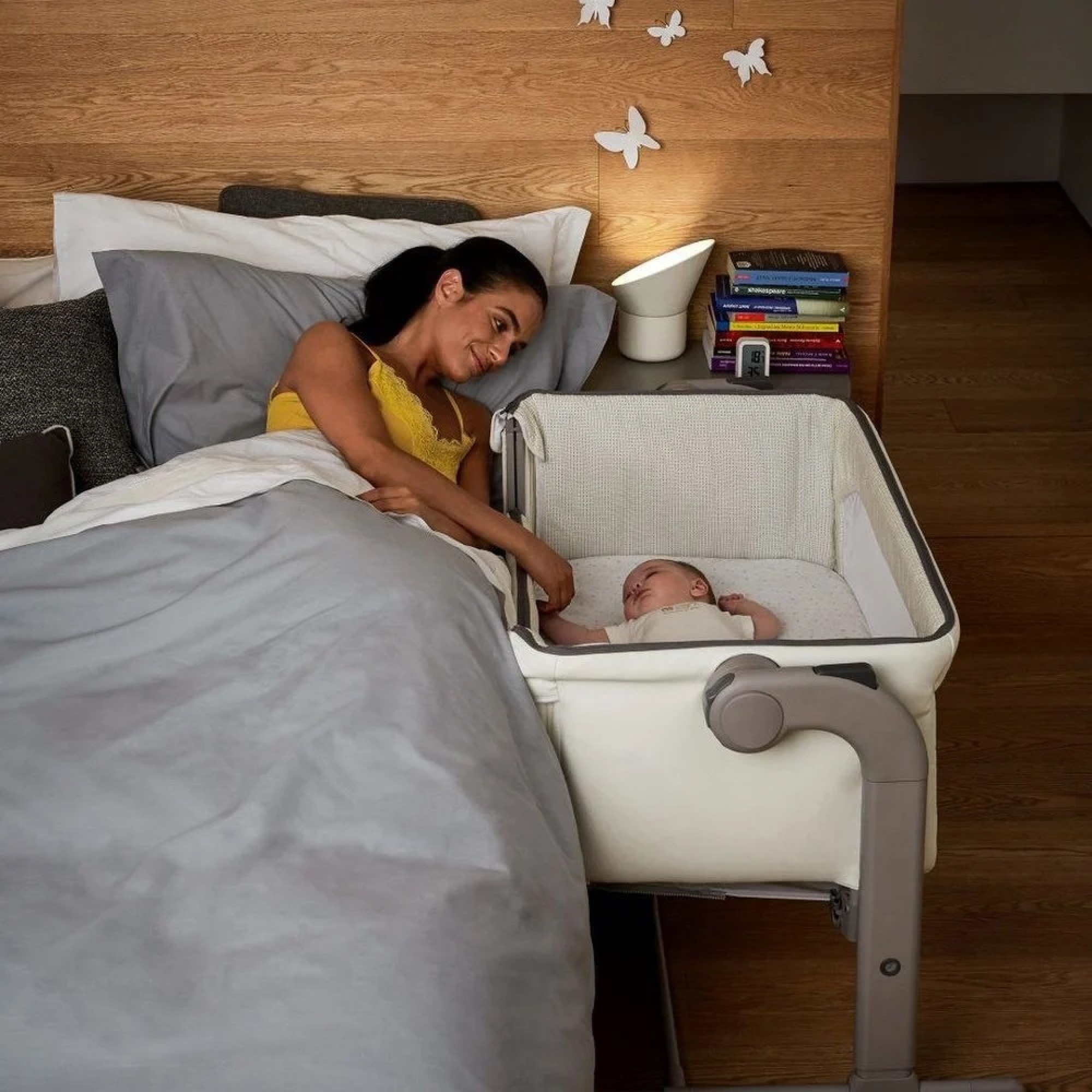 Chicco Next2Me Magic - це приставне ліжечко з режимом заколисування і новим механізм опускання боковини, спеціально створена для комфортного спільного сну.