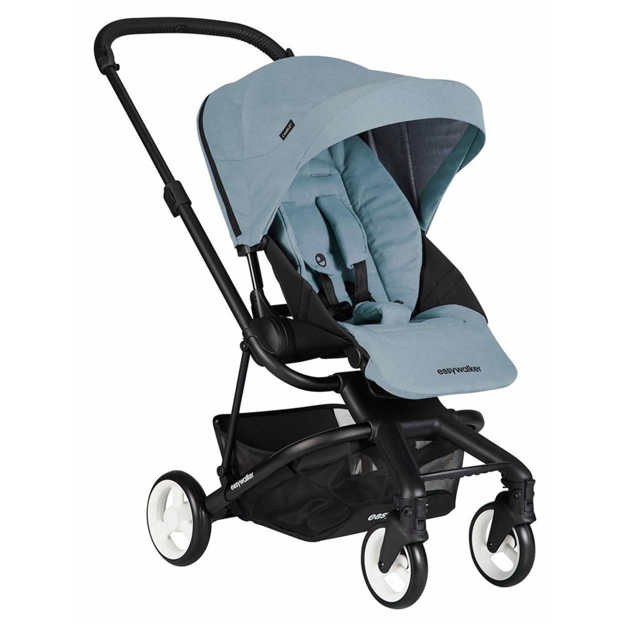 Складна рама Раму можна компактно скласти разом із прогулянковим блоком і поставити у вертикальне положення, завдяки чому коляска зручна у транспортуванні та зберіганні.Модель EasyWalker Charley продумана до дрібниць, вона забезпечить приємну прогулянку алеями парку, нерівними міськими тротуарами або лісовими стежками. На шасі EasyWalker Charley можна встановити автокрісла групи 0+ від Britax-Römer, Maxi Cosi та Cybex.