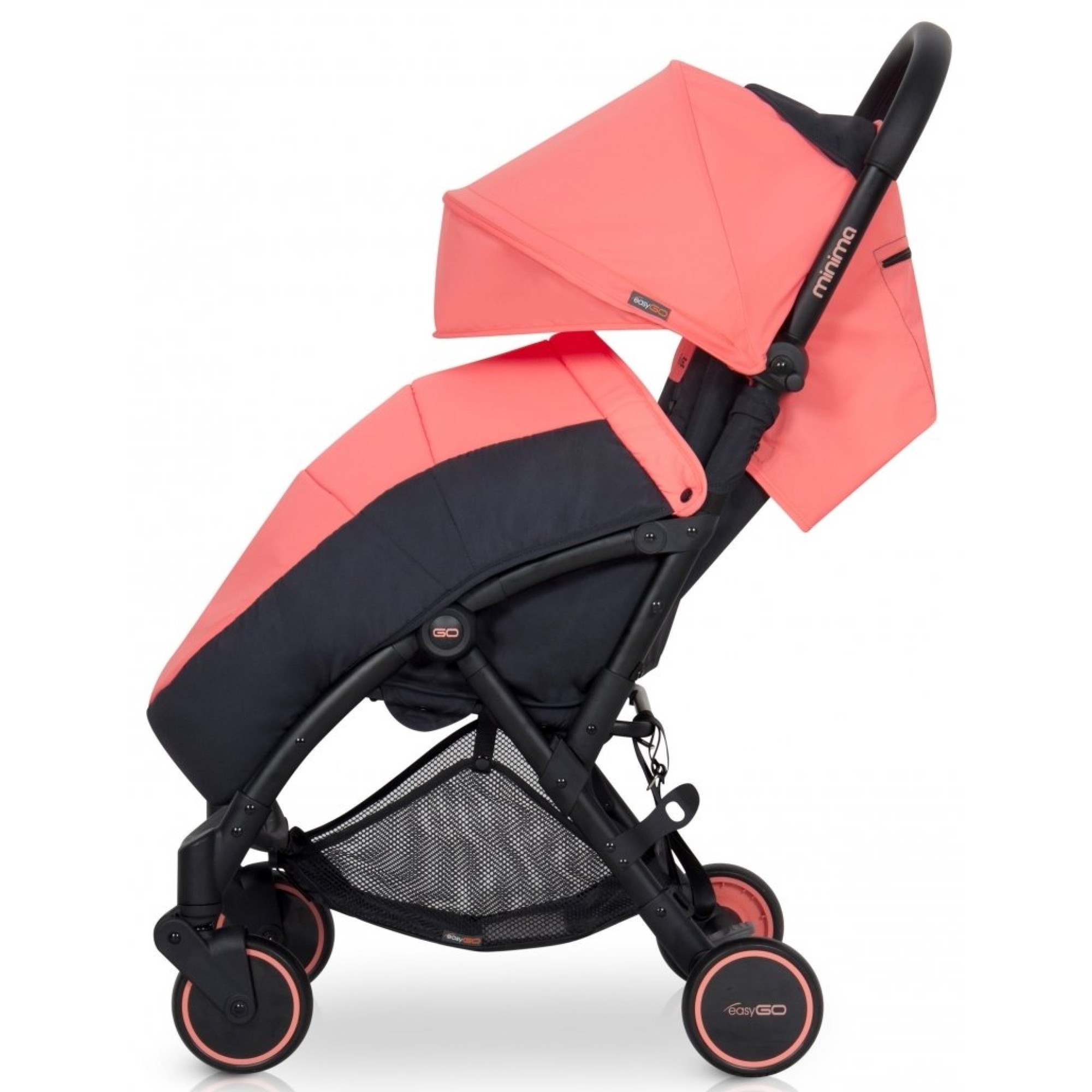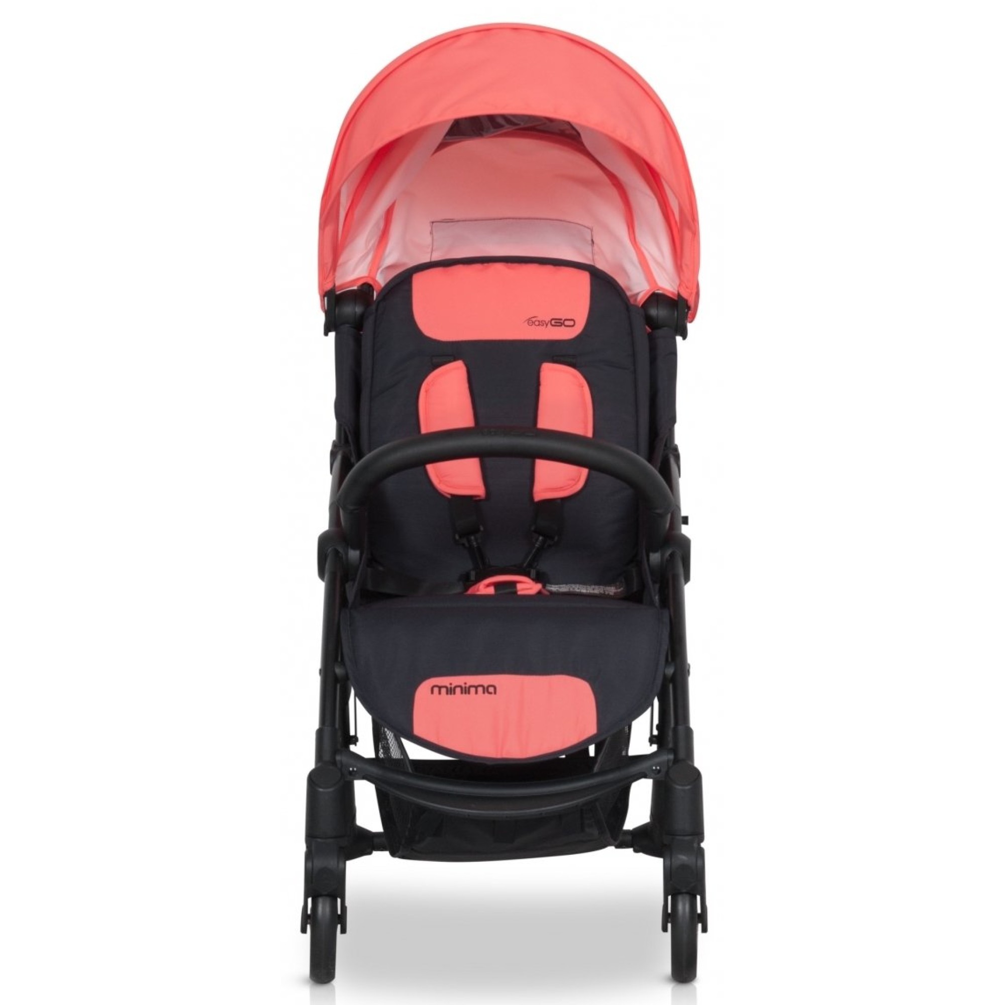 EasyGo Minima (ІзіГоу Мініма) - коляска зі стриманим мінімалістичним дизайном, відрізняється від конкурентних моделей компактними розмірами і легкістю в управлінні. Зручний варіант для експлуатації в умовах міста: урбаністичний дизайн і невелика вага роблять цю модель ідеальним вибором для сучасних молодих батьків.