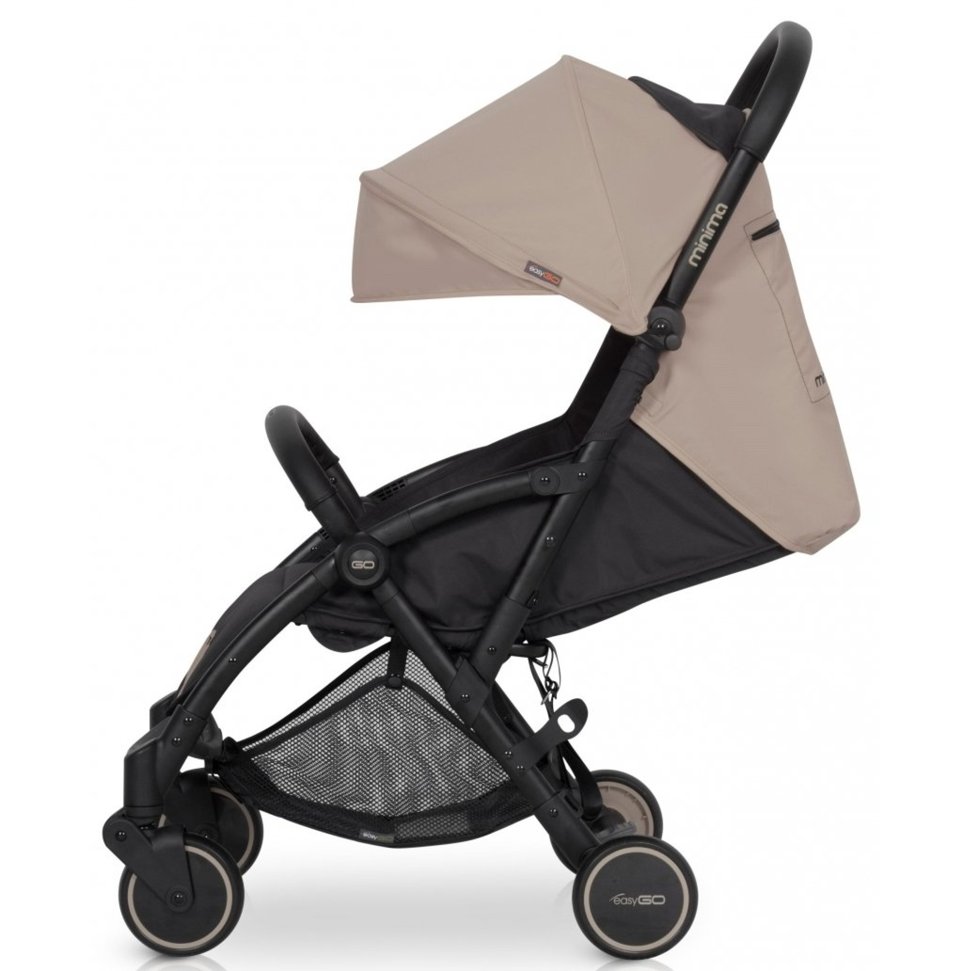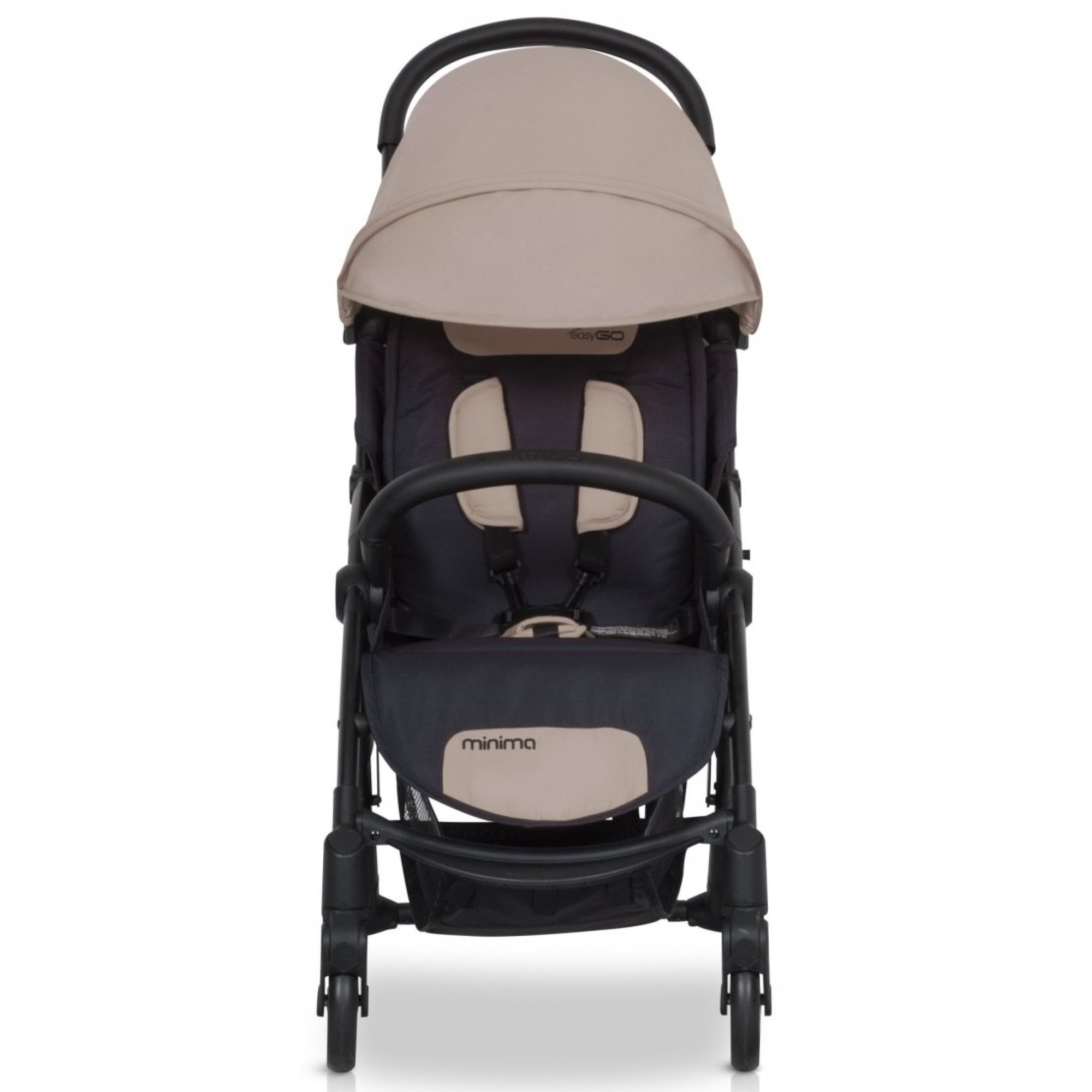 EasyGo Minima (ІзіГоу Мініма) - коляска зі стриманим мінімалістичним дизайном, відрізняється від конкурентних моделей компактними розмірами і легкістю в управлінні. Зручний варіант для експлуатації в умовах міста: урбаністичний дизайн і невелика вага роблять цю модель ідеальним вибором для сучасних молодих батьків.