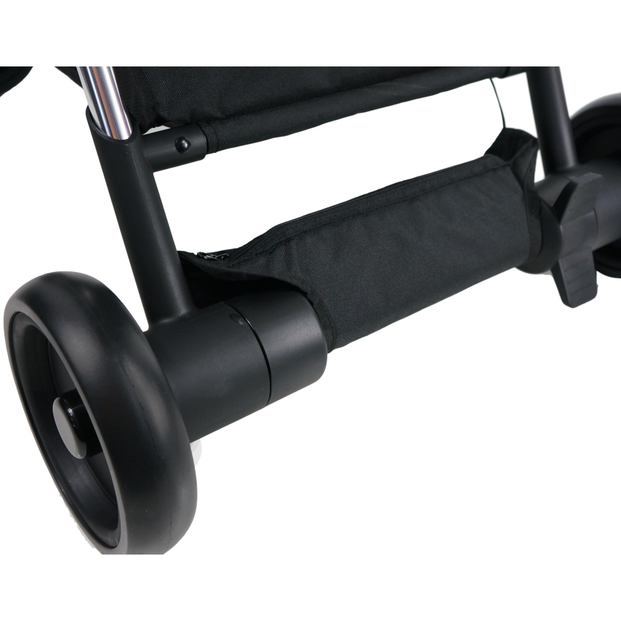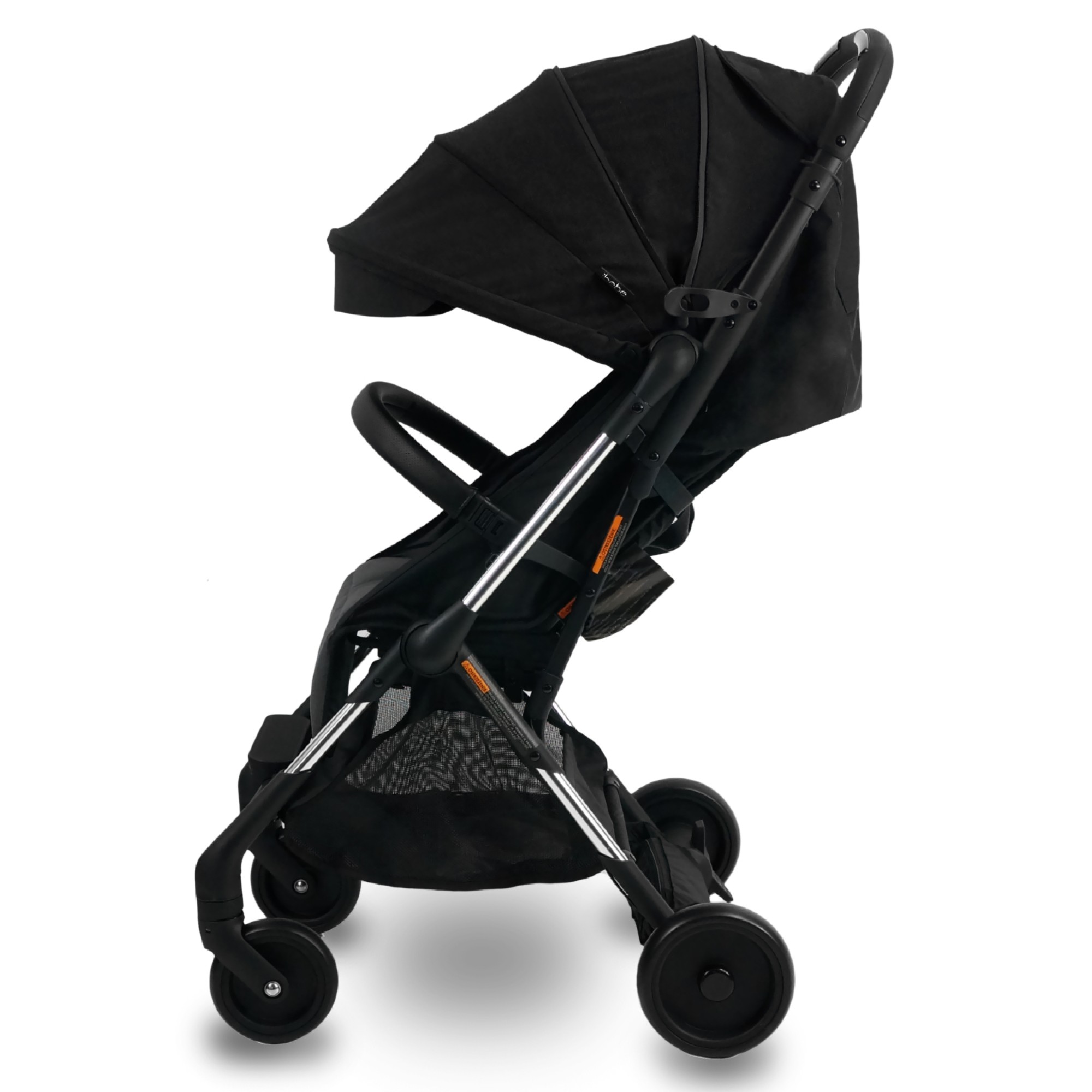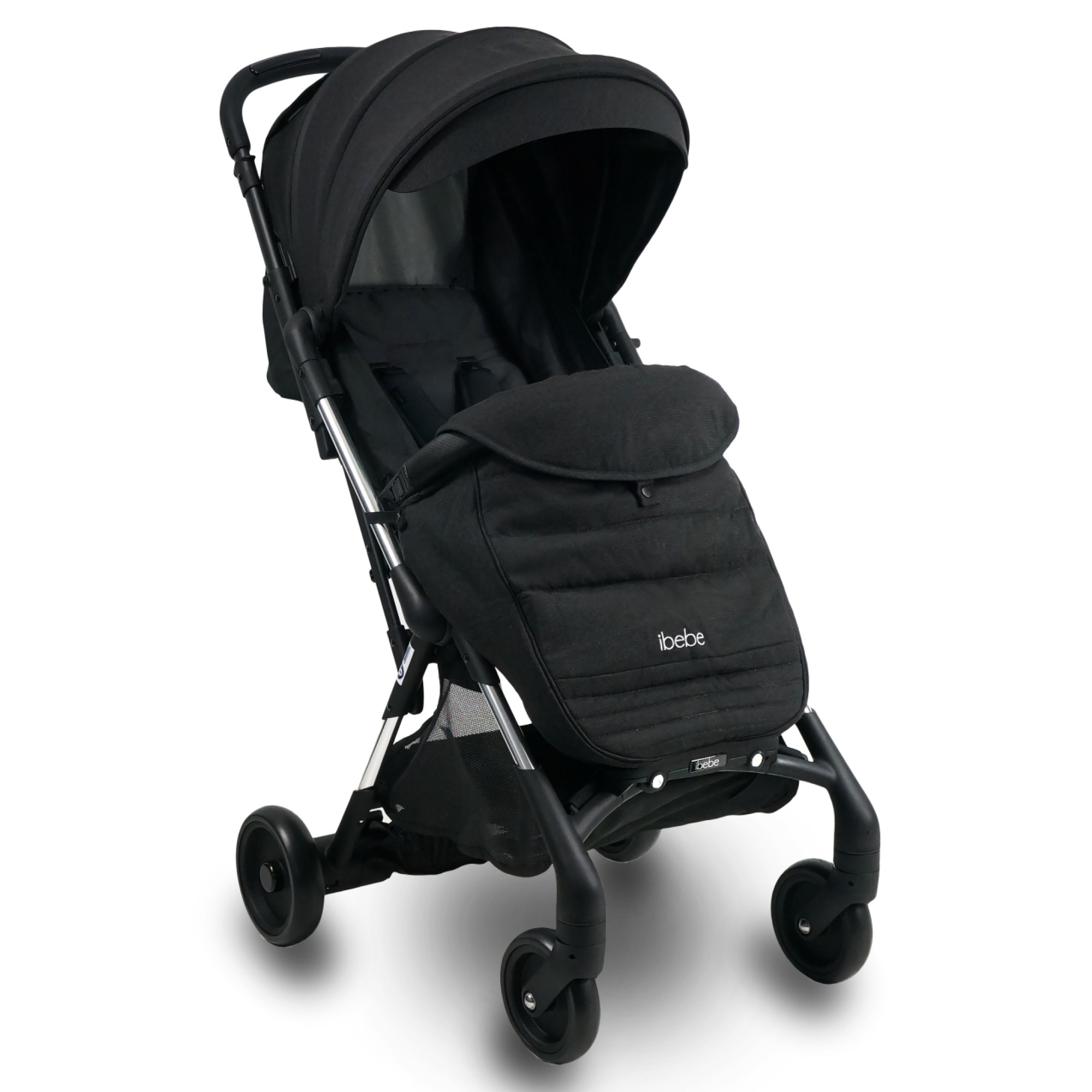 Компактна прогулянкова коляска iBebe i-stop Mini обладнана гальмівною системою Auto-Braking-System i-stop. Інноваційна система зупиняє хід коляски, якщо ви забули поставити її на стандартне ножне гальмо. Система, вбудована в ручку, сенсорно зчитує тепло рук, і їх відсутність активує гальмівну систему, яка плавно та безпечно для дитини зупиняє коляску. Ще однією особливістю є світлодіодна підсвітка, що забезпечує гарну видимість у темну пору доби. Рама вирізняється простою конструкцією, складається однією рукою разом із сидінням і легко транспортується. Передні колеса поворотні з можливістю блокування, амортизація є на всіх колесах
