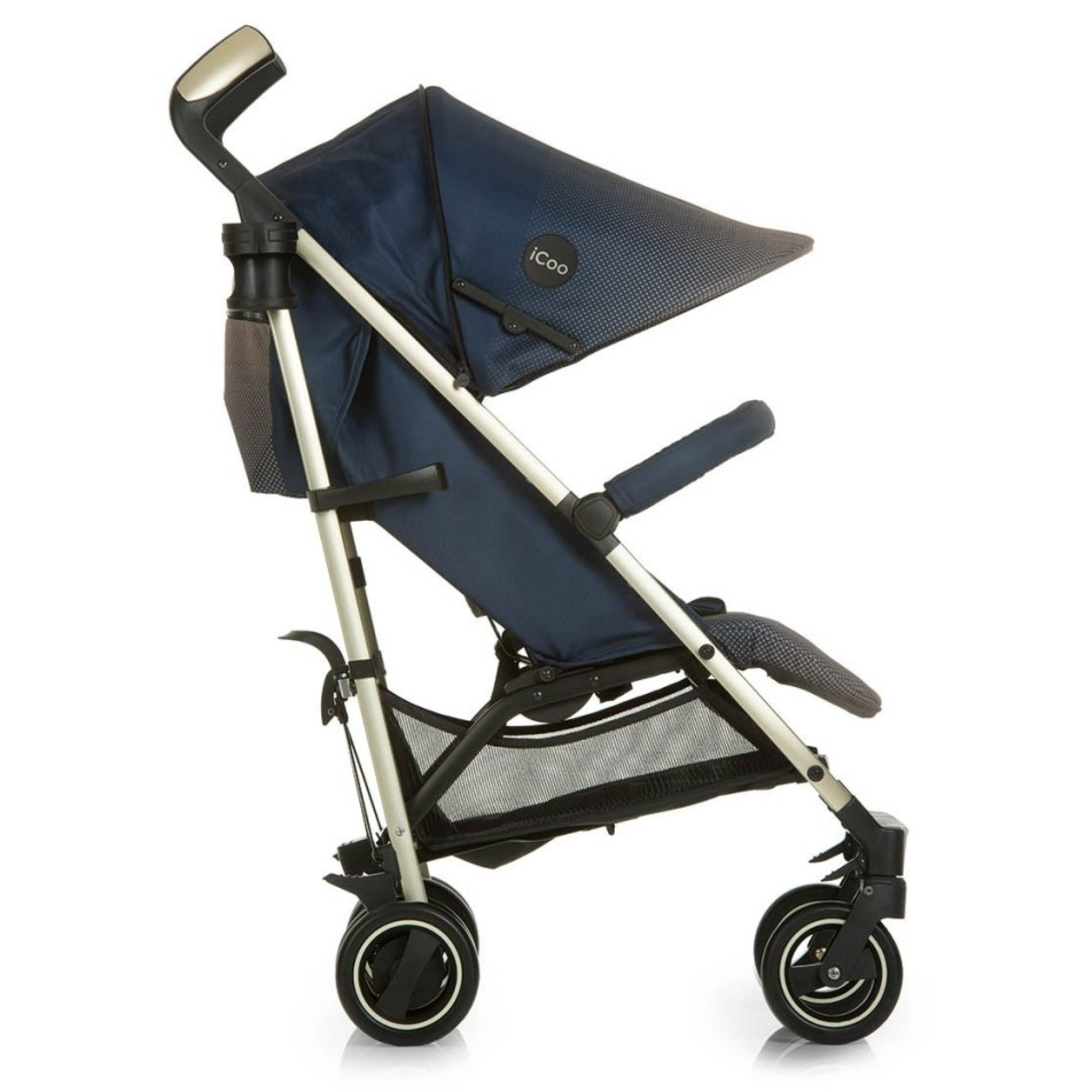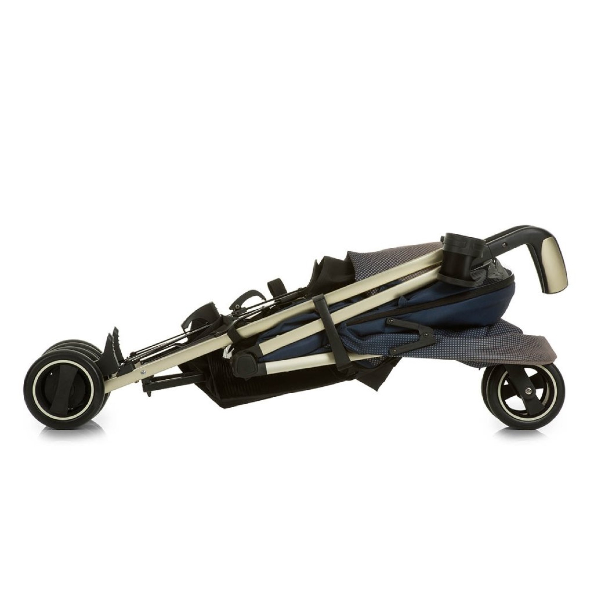- стильна алюмінієва рама золотистого кольору робить коляску дуже легкою;