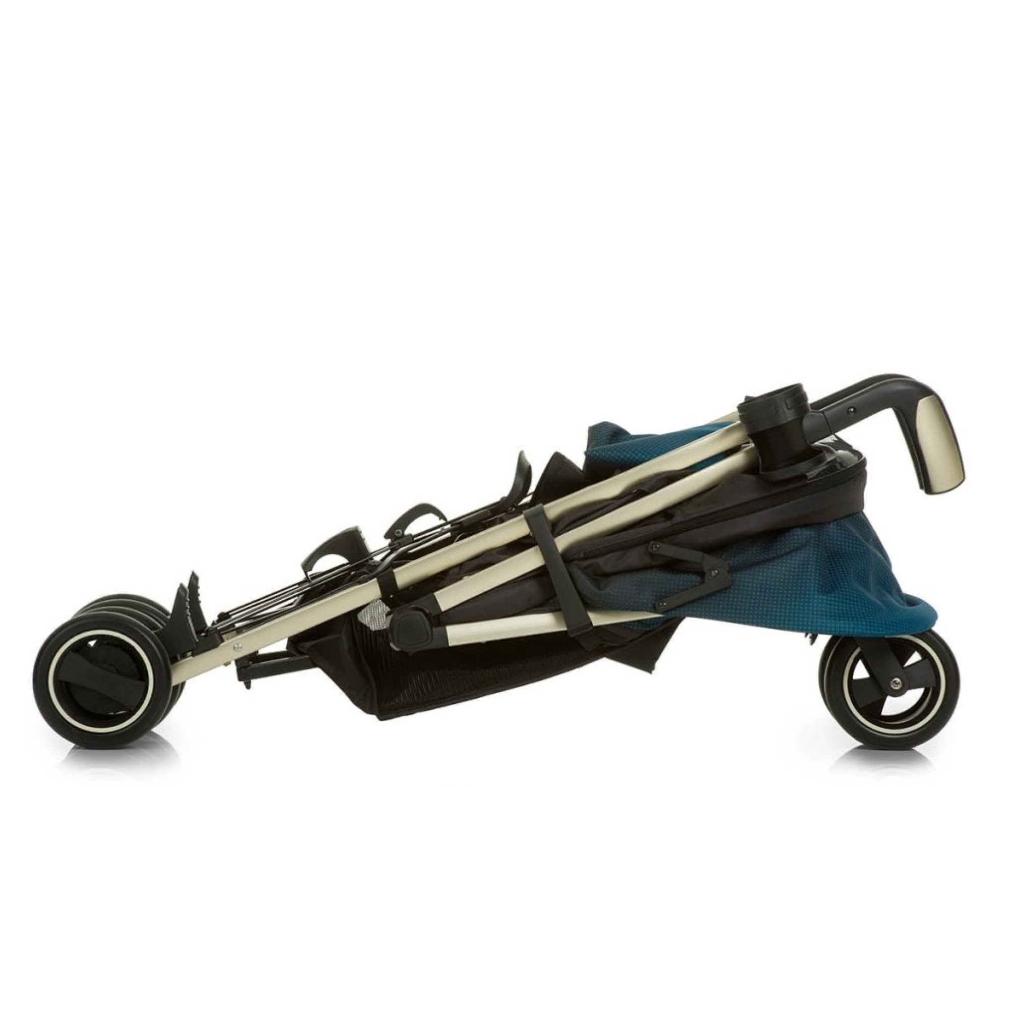 - стильна алюмінієва рама золотистого кольору робить коляску дуже легкою;